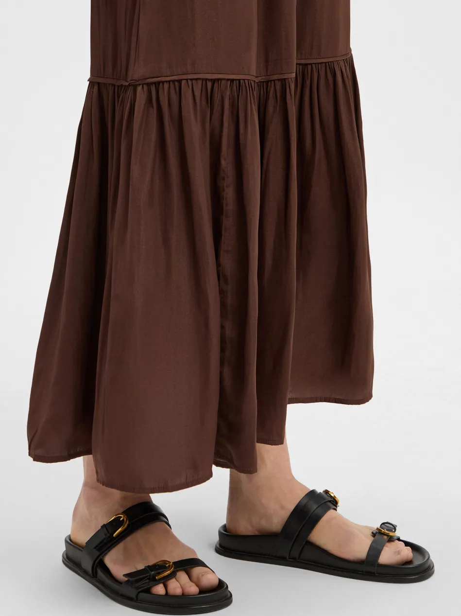 Der zero Midirock in leichter, angenehm seidiger Qualität setzt auf ein unkompliziertes Design mit elastischem Bund, Raffungen und einem angesetzten Volantsaum.