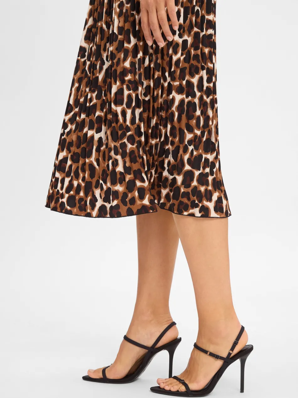 Ob mit Top, T-Shirt oder Bluse kombiniert, der A-Linien-Rock von Betty & Co. kommt in der Mischung aus Satin, Plisseefalten und Animal-Muster in jedem Look stilvoll zur Geltung.