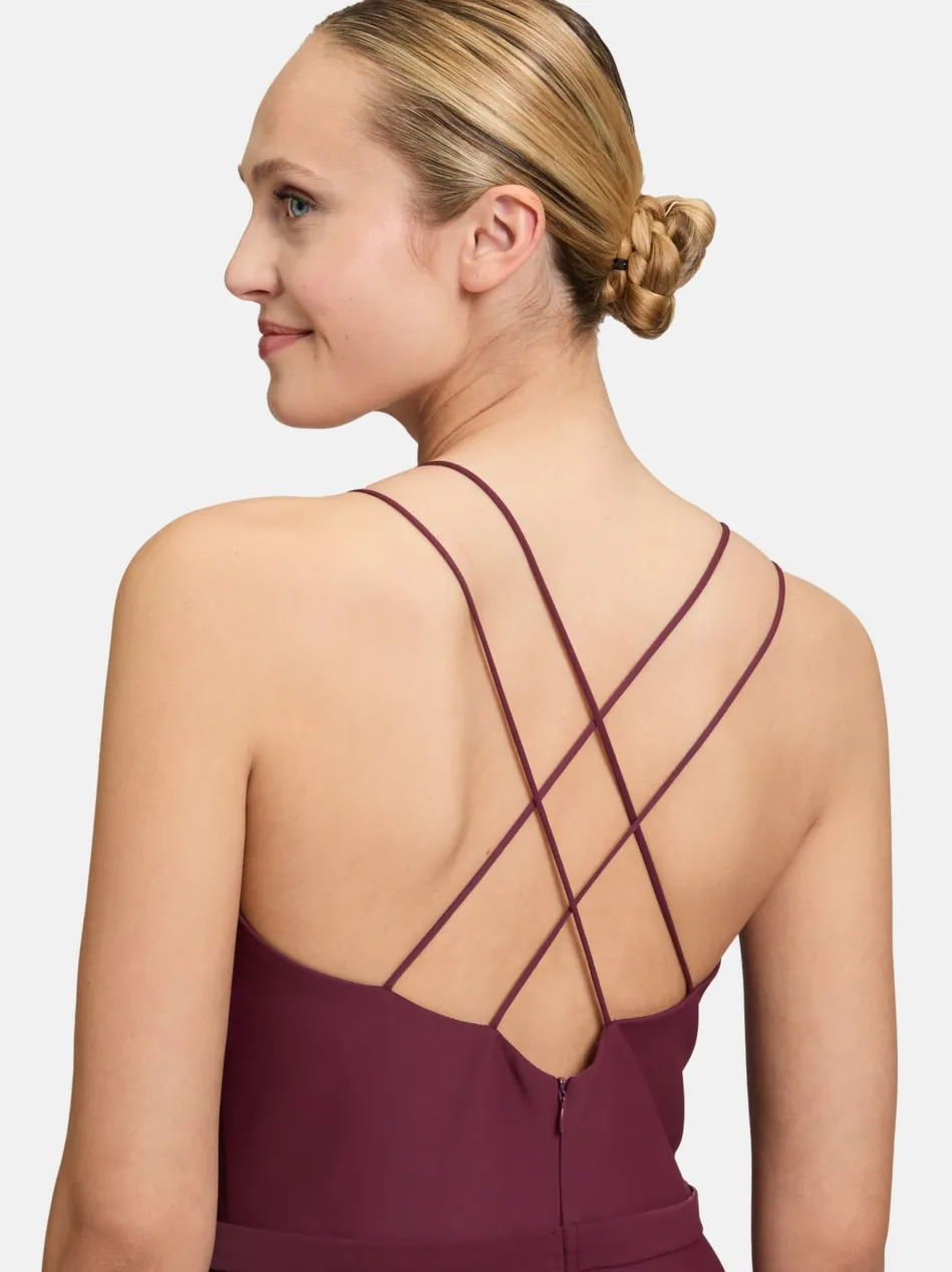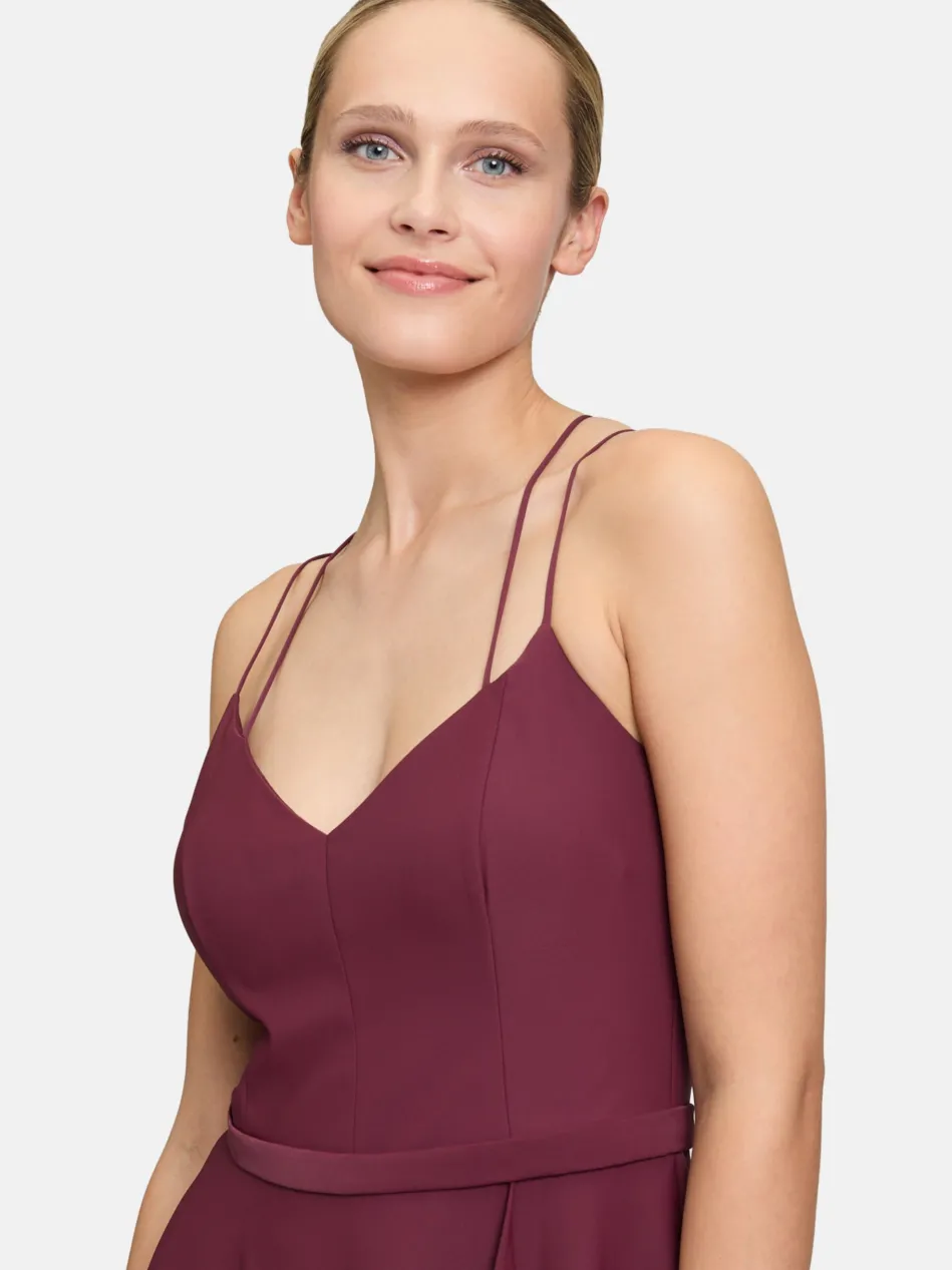 Dieses Abendkleid von Vera Mont setzt Ihre Figur stilvoll in Szene. Die taillierte Passform und praktischen Nahttaschen sorgen für Modernität, während schlichte Spaghettiträger und das unifarbene Design Eleganz verleihen. Der Volantschnitt und die Maxi-Läge machen das ärmellose Kleid zu einem echten Hingucker – ideal für besondere Anlässe!