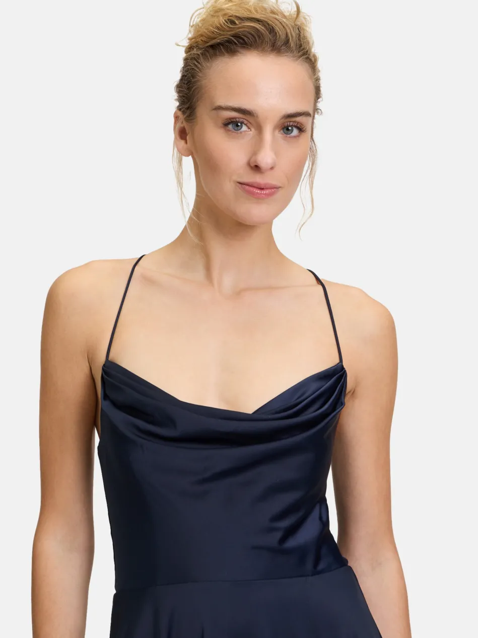 Dieses Teil setzt Sie perfekt in Szene! Entdecken Sie das unifarbene Abendkleid von Vera Mont aus Polyester und Satin. Der Wasserfallausschnitt in Kombination mit der Schnürung am Rücken sorgt für ein atemberaubendes Design. Das ärmellose Kleid überzeugtzudem mit Spaghetti-Trägern und einer figurumspielenden Passform. Für einen leichten Einstieg sorgt ein zusätzlich integrierter Reißverschluss.