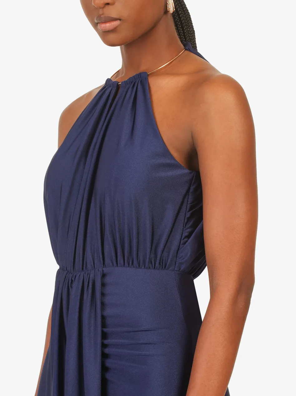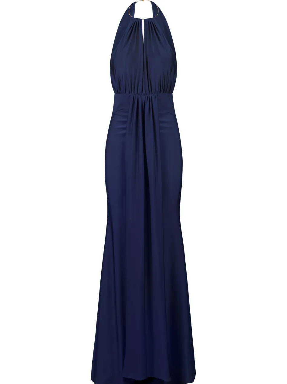Verführerisches Maxikleid mit tiefem Rückenausschnitt und eleganter Drapierung. Der verdeckte Reißverschluss sorgt für einen glatten Look und einfaches Anziehen.