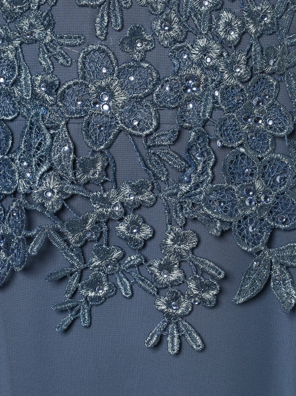 Florale Spitze und Schmucksteine verleihen dem klassischen Abendkleid von Luxuar Fashion ein hübsches Finish.