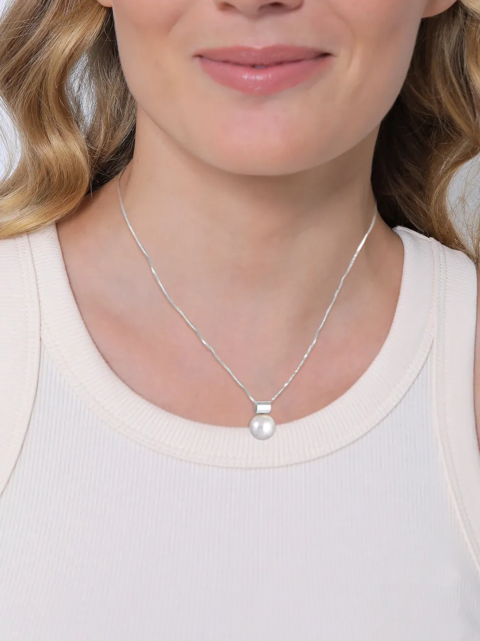 Eleganter Perlenanhänger aus feinstem 925er Sterling Silber mit einer hochwertigen synthetischen Perle. Diese wunderschön schlichte Kristalle Perle 12mm rund, verleiht dem Anhänger eine Einzigartigkeit. Ein Accessoire, welches in keiner Schmucksammlung fehlen sollte. Die Halskette dient lediglich zur Veranschaulichung und gehört nicht zum Lieferumfang.
