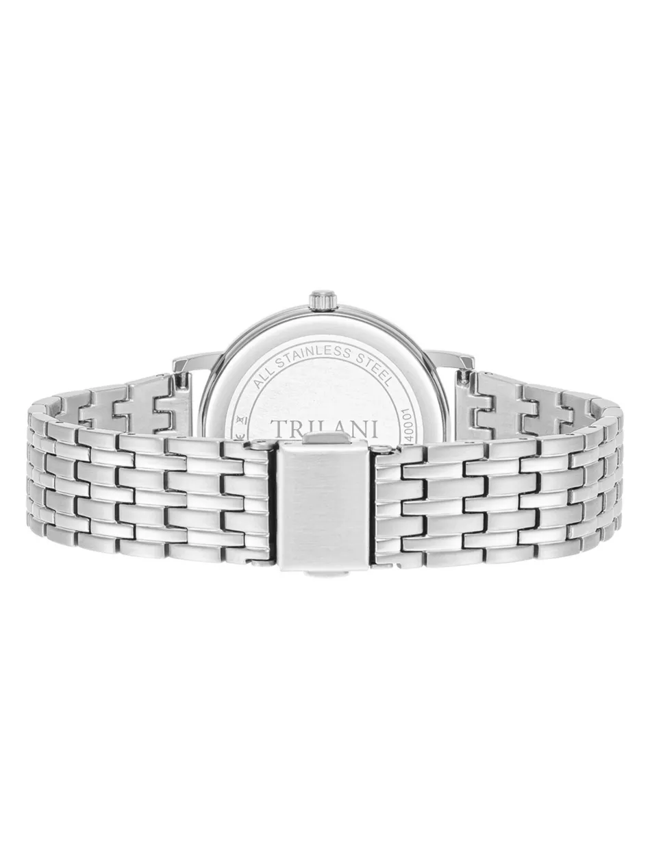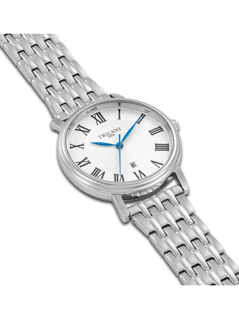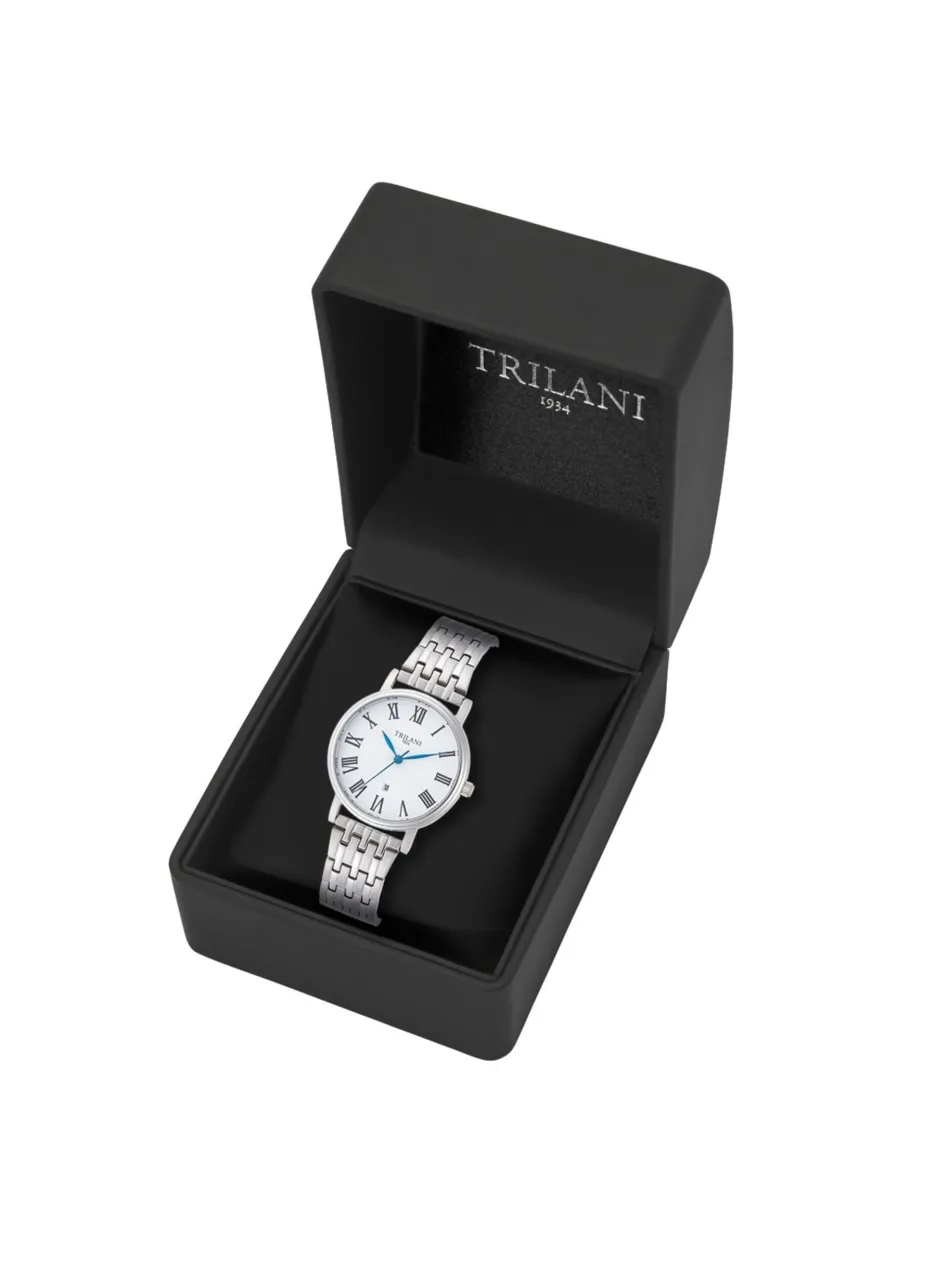 Sie legen bei Ihrer Uhr Wert auf zeitlose Eleganz? Dann ist diese Damenuhr der Marke Trilani die perfekte Wahl. Das stilvolle Modell punktet mit einem klassisch gestalteten Zifferblatt mit römischen Zahlen, Feuille-Zeigern und Datumsanzeige. Das Edelstahlgehäuse und ein darauf abgestimmtes, sportliches Gliederarmband aus Edelstahl fügen sich harmonisch in das Designkonzept ein und machen die Uhr zum robusten Begleiter in Beruf und Freizeit.