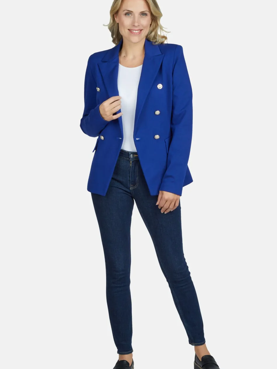 Schmaler doppelreihiger Blazer mit Spitzfacon, Pattentaschen, Rücken mit kontrastiger Halbfütterung, Ärmel mit Jerseyfutter