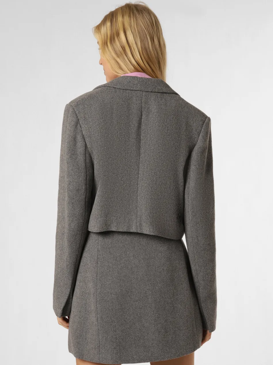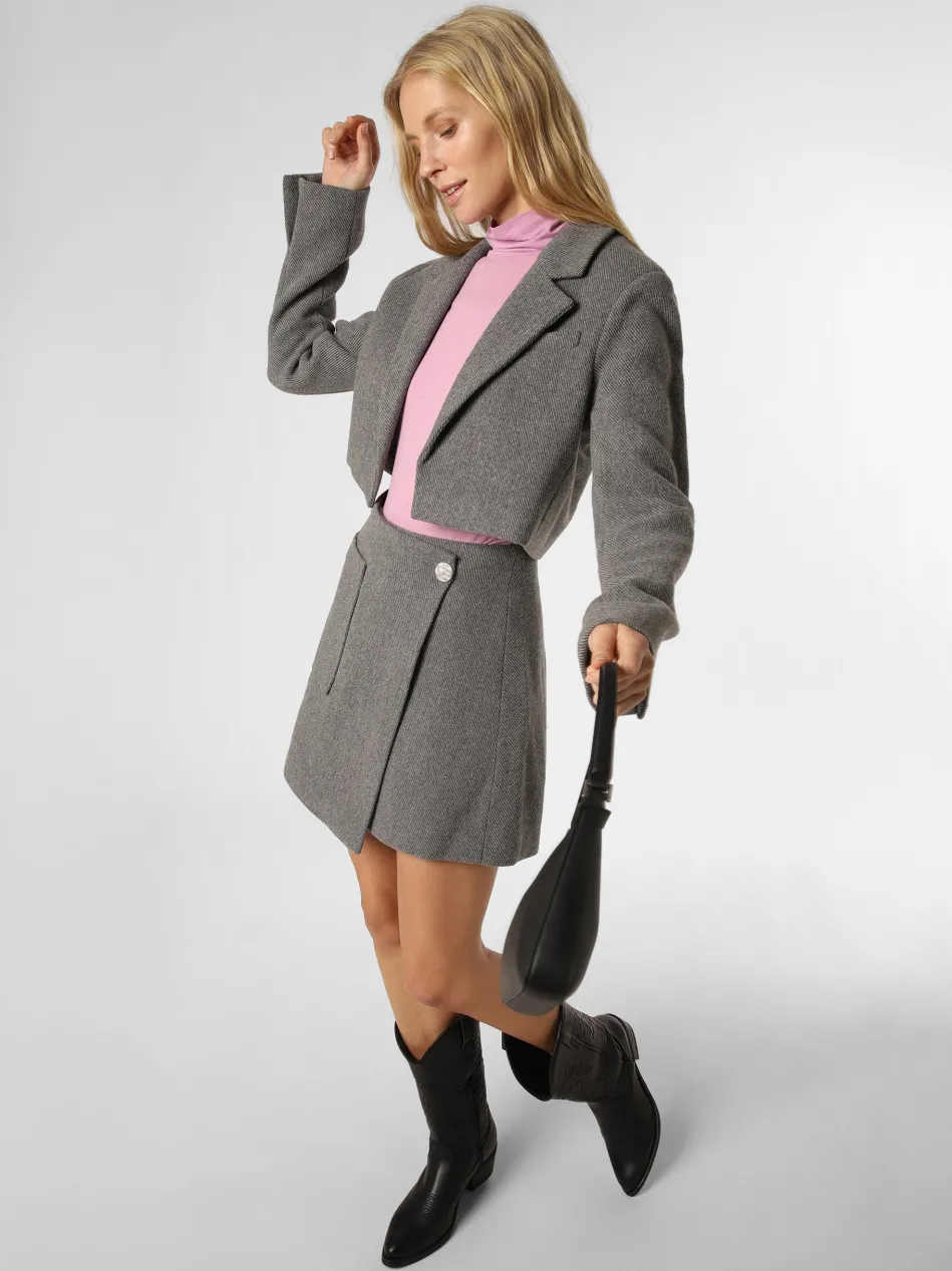 Der offene Crop-Blazer Gira-M von mbyM kreiert mühelos casual-smarte Looks – ob solo oder zusammen mit dem passenden Rock kombiniert.