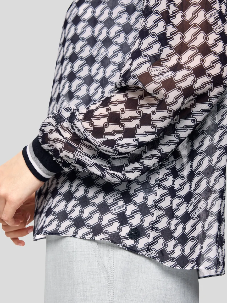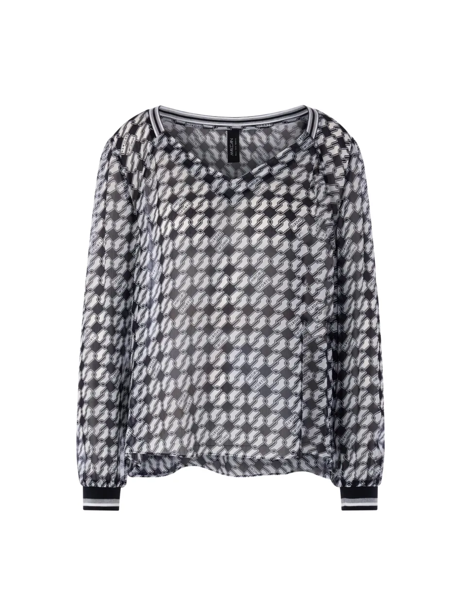 Die zarte, semitransparente Bluse besticht durch die Leichtigkeit des Viskose-Materials. Ein weiteres Highlight ist der Allover-Print im neuen Cube-Design. Kleine Ringeldetails am Kragen und an den Ärmelabschlüssen addieren einen Touch Sportivität.