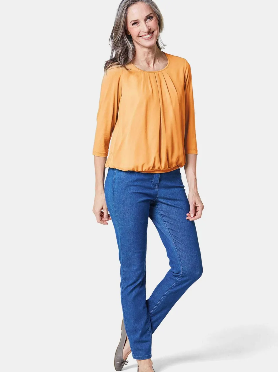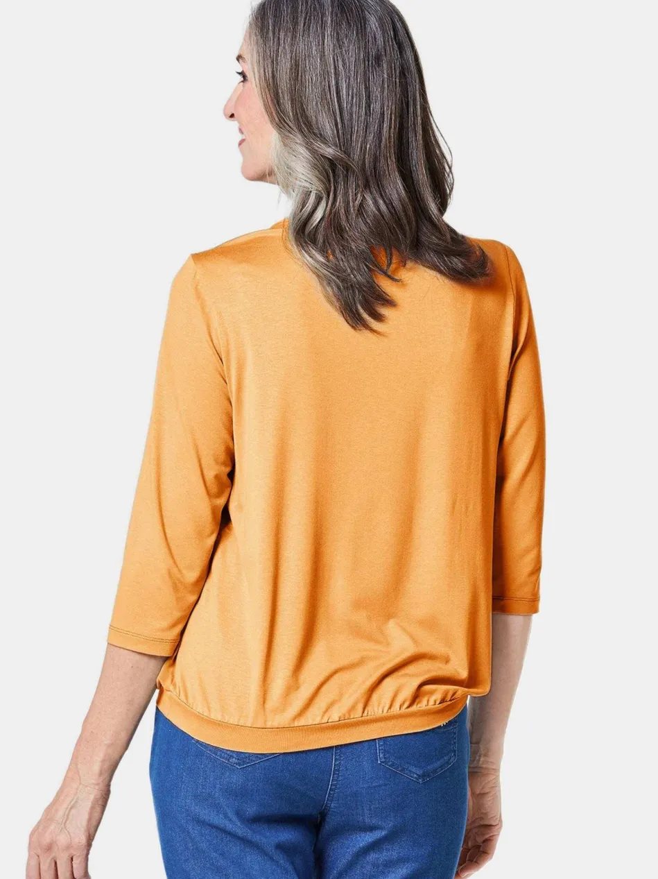 - Eleganter Rundhals-Ausschnitt, 3/4-Ärmel, Jerseybündchen