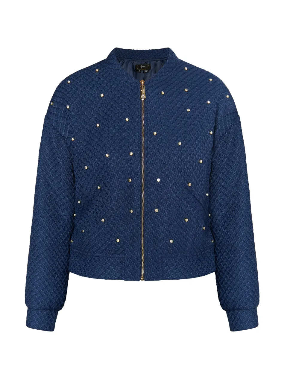 Der charmante Glamour-Style von faina wird mit dieser Bouclé Jacke einmal mehr bestätigt. Das weiche, strukturierte Material ist auf der Vorderseite mit auffällig funkelnden Strass-Steinen besetzt, womit der Blouson im Alltag wie auch am Abend glänzt. Perfekt in Kombination mit der passenden Shorts der Brand.