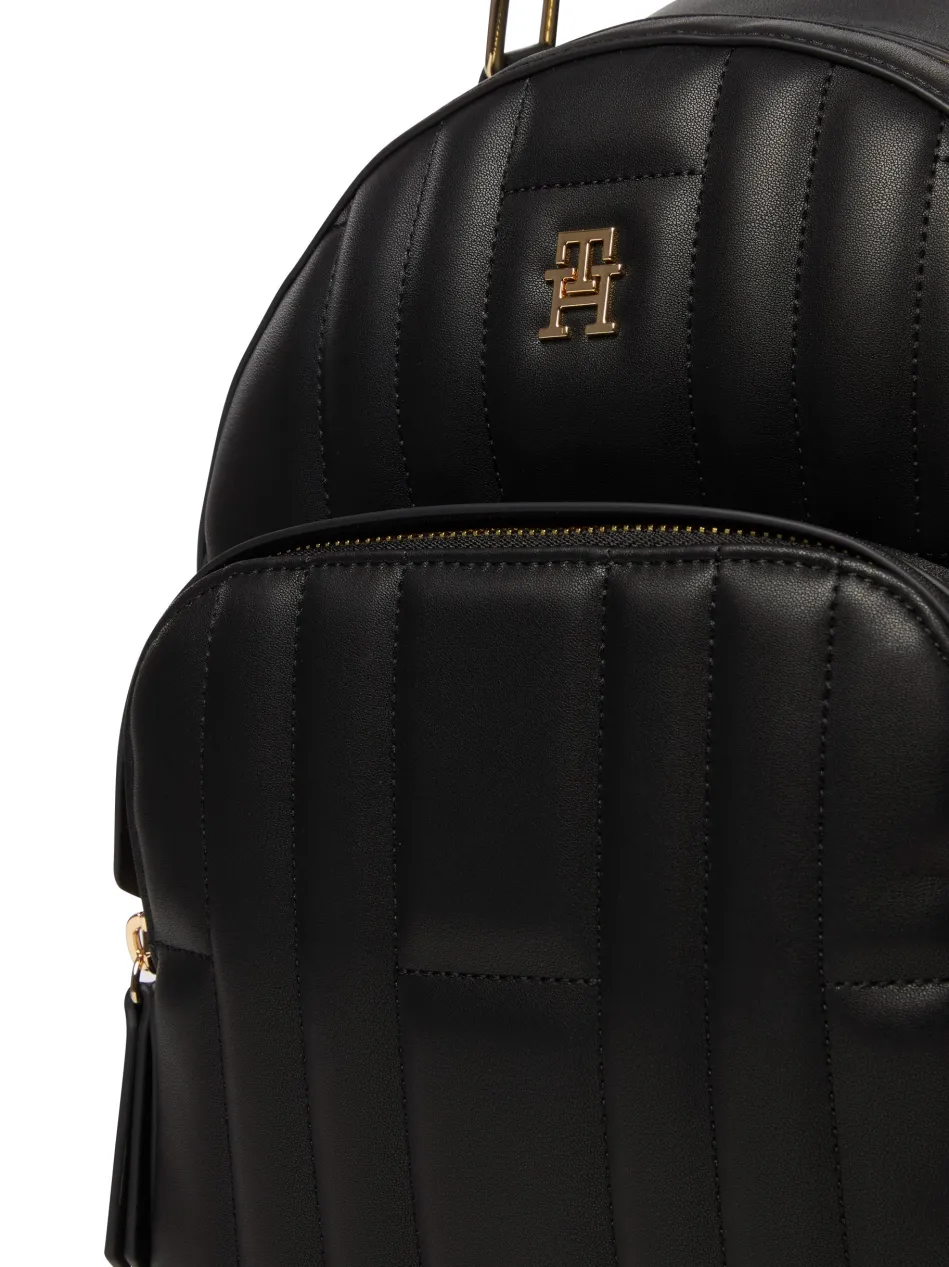 Der Tommy Hilfiger Cityrucksack punktet mit modernem Kunstleder-Design und metallenen Details, komfortabel ergänzt durch verstellbare Schulterriemen und einen kurzen Tragehenkel.