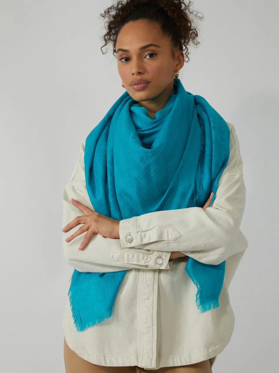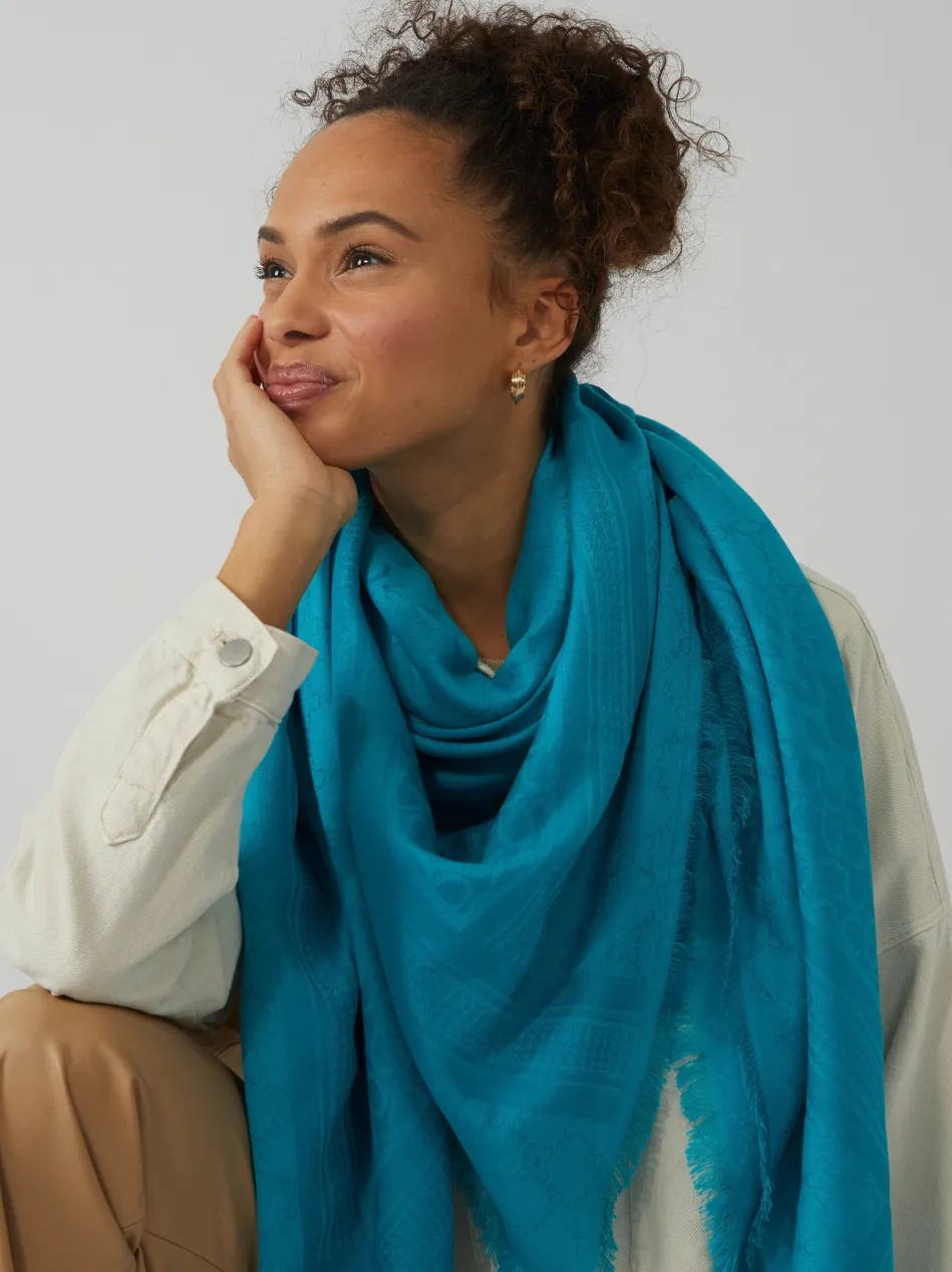 Dieses XL-Tuch aus hochwertigem Baumwoll-Modal-Mix ist unser Signature Piece mit dezent eingewebtem Monogramm-Muster. Weil das Premium Tuch den ultimativen CODELLO-Look widerspiegelt, ist es nicht nur in saisonalen Trendfarben wie diesem leuchtenden Türkis erhältlich, sondern auch in klassischen Farben, die deine Garderobe optimal abrunden. Wir nennen die edle Verarbeitung von Baumwolle und Modal.
