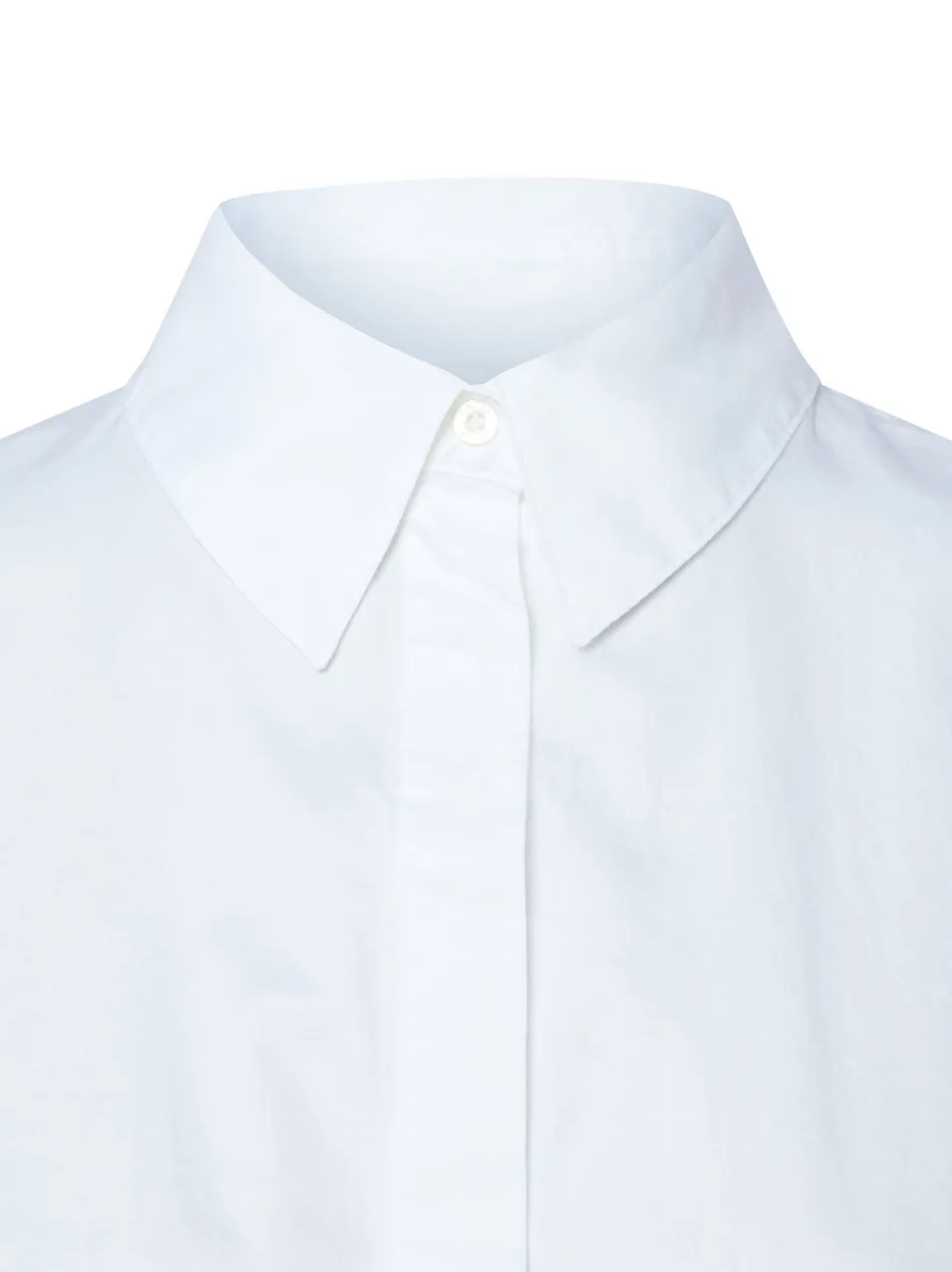 Im modernen Design mit verkürzter Front und Abdeckleiste erweist sich die Hemdbluse von s.Oliver als trendiger Style zu Stoffhose wie Jeans.