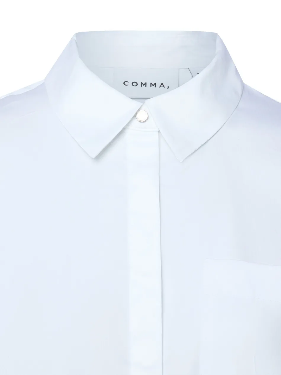 Dezente Logo-Details zieren die moderne Hemdbluse von comma aus stretchigem Baumwollmix mit verdeckter Knopfleiste und einer aufgesetzten Brusttasche.