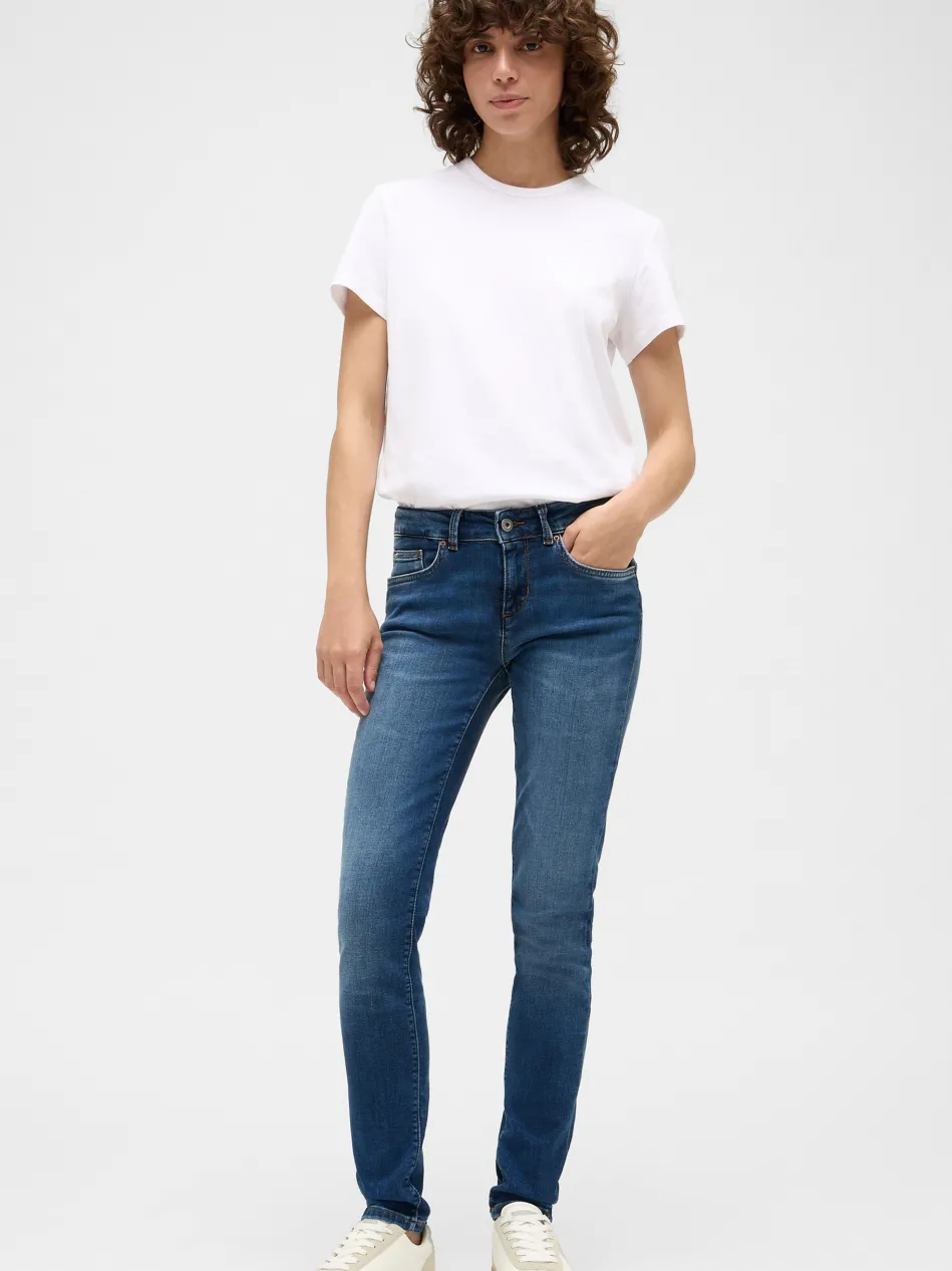 - Jeans mit niedrigen Bund und schmalem Beinverlauf