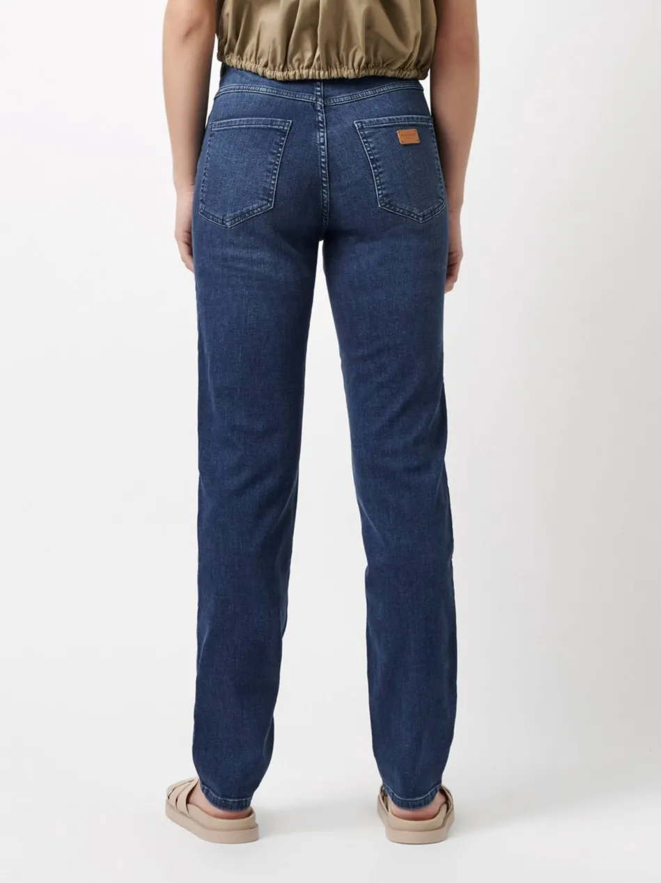 Die Jeans in normaler Länge zeichnet sich durch eine hohe Leibhöhe sowie einem Bund mit Shapingeffekt aus. Die normale Oberschenkelweite und der schmale Beinverlauf garantieren eine perfekte Passform. Sie hat Stecktaschen mit Coinpocket vorne und aufgesetzte Taschen hinten. Bequemer, weicher