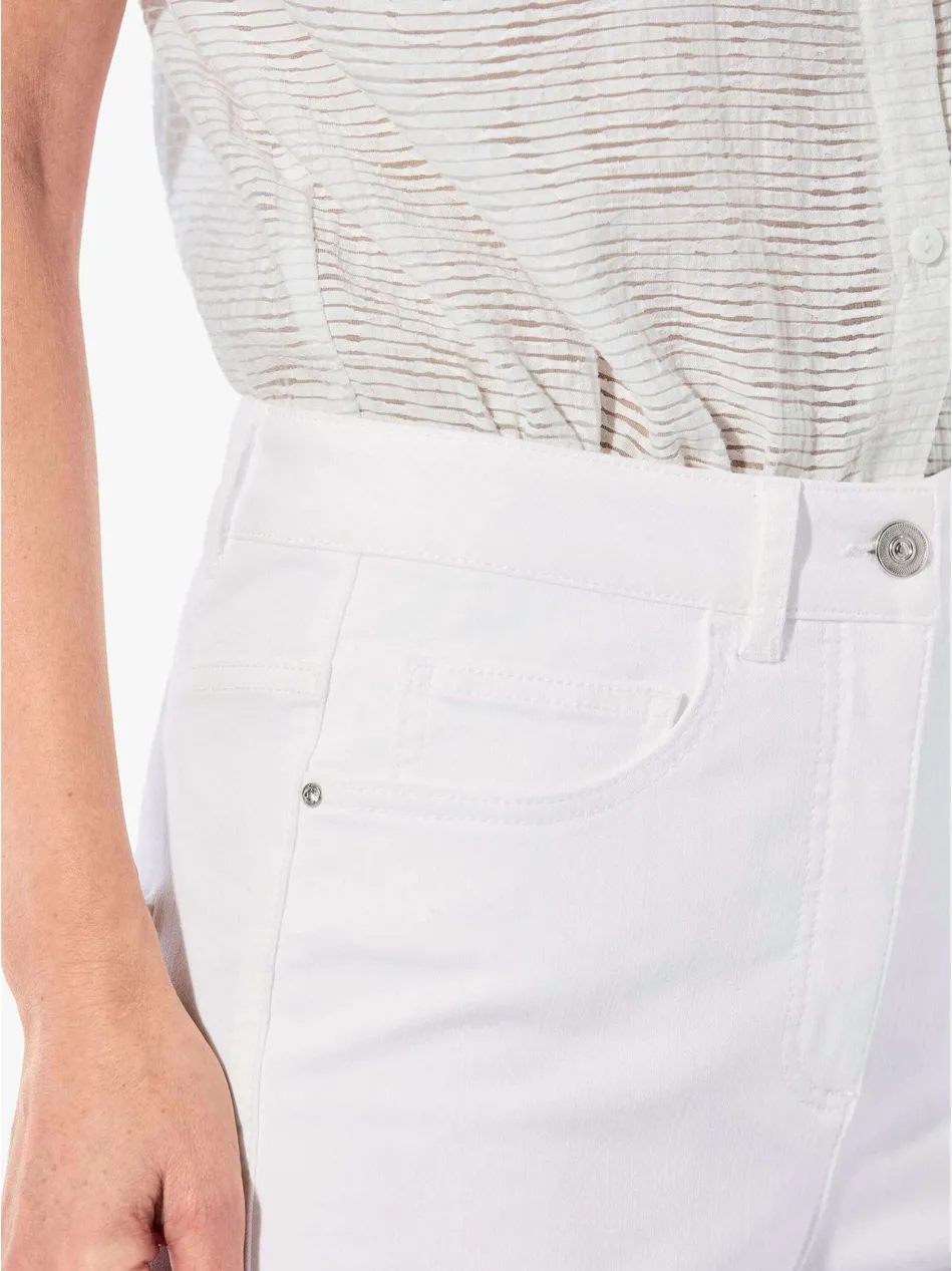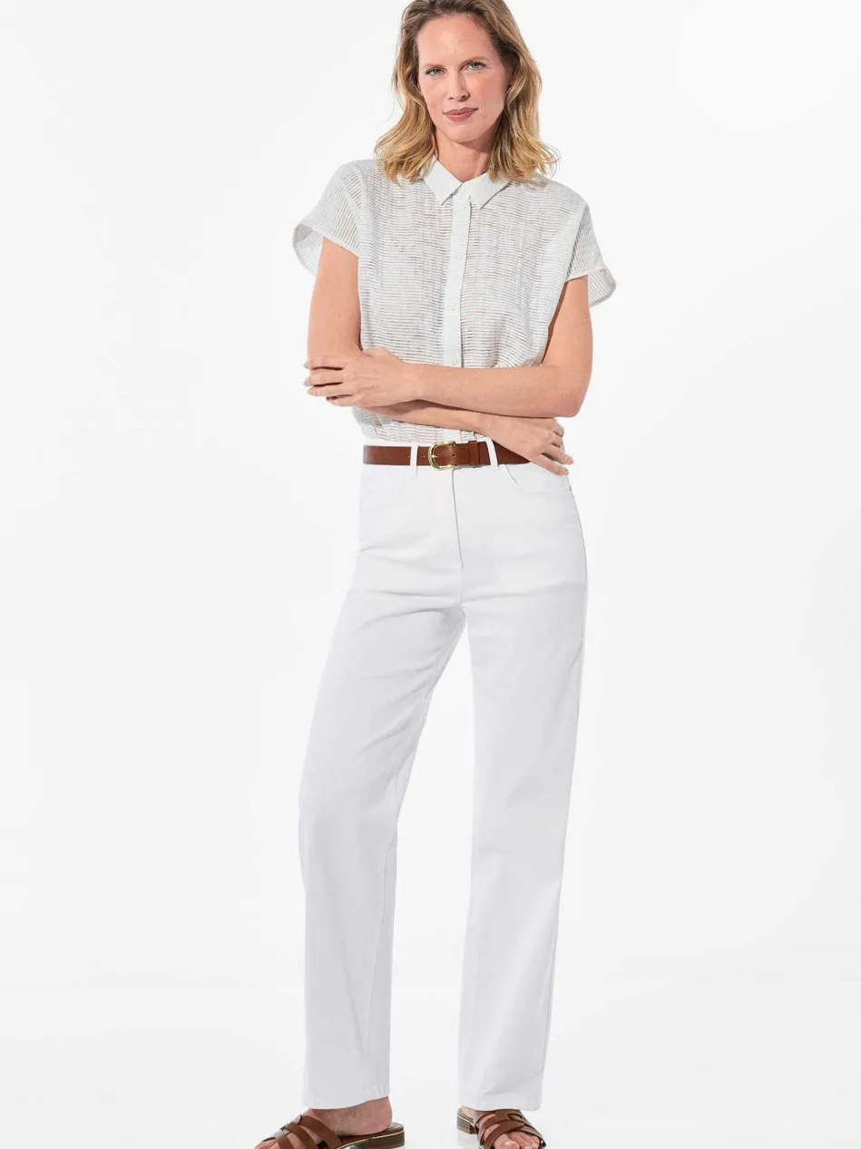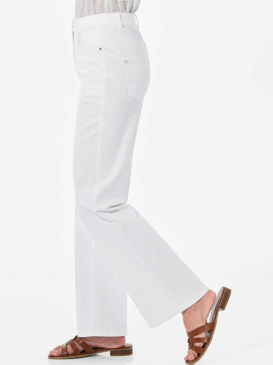 Jeans in angesagter Optik: Ihre komfortable Passform mit weitem Bein und leicht erhöhter Leibhöhe schenkt besten Tragekomfort. In softer, sehr elastischer Denimqualität mit dezenter Waschung und Kontrastnähten für trendige Auftritte. Die Gesäßtaschen werden von einer dekorativen Stickerei und hochwertigen Nieten geziert. Saumweite ca. 52 cm.