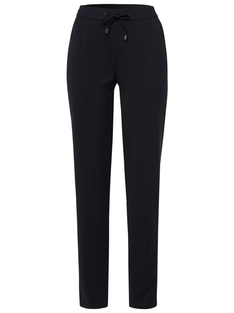 Diese Hose vereint stilvolle Eleganz mit höchstem Tragekomfort. Der elastische Bund mit Kordelzug sorgt für eine optimale Passform, während das weiche Material angenehme Bewegungsfreiheit bietet. Vielseitig kombinierbar für Freizeit und Büro.