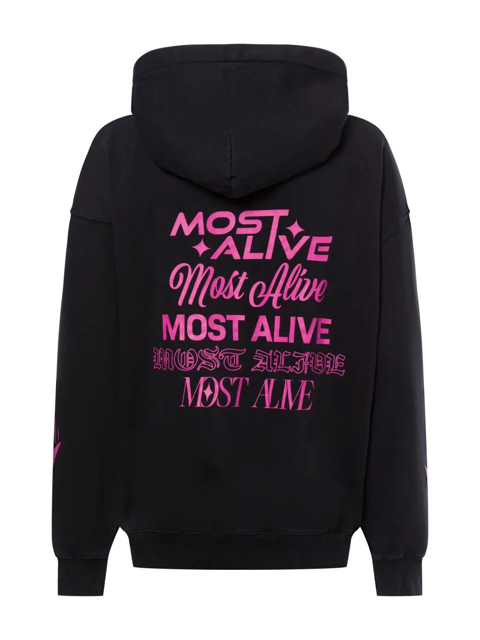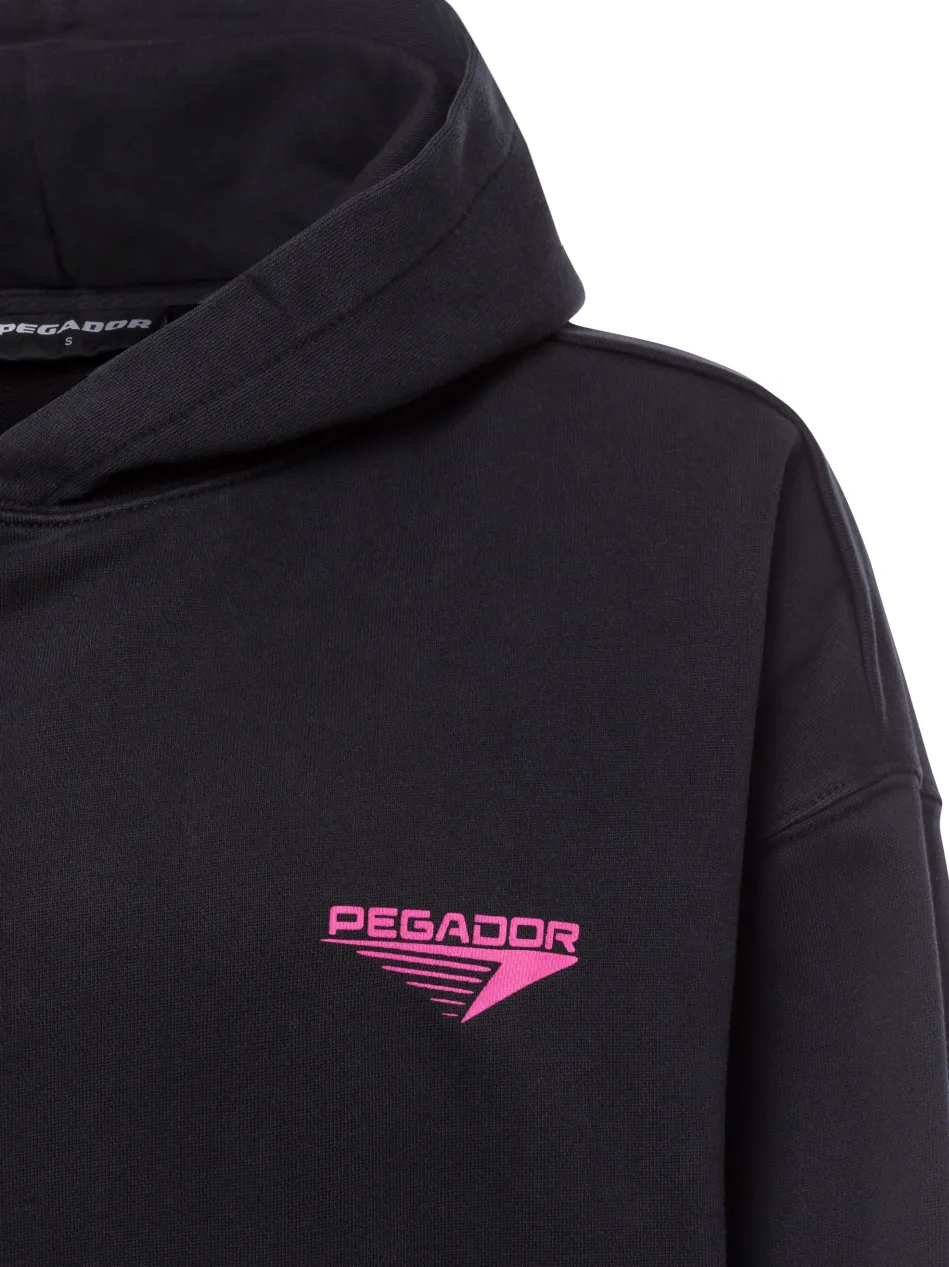 Der PEGADOR Hoodie Mei umhüllt dich mit kuschelweichem Sweatmaterial und lässigem Oversized-Schnitt, während der Print auf dem Rücken für einen einzigartigen Look sorgt.