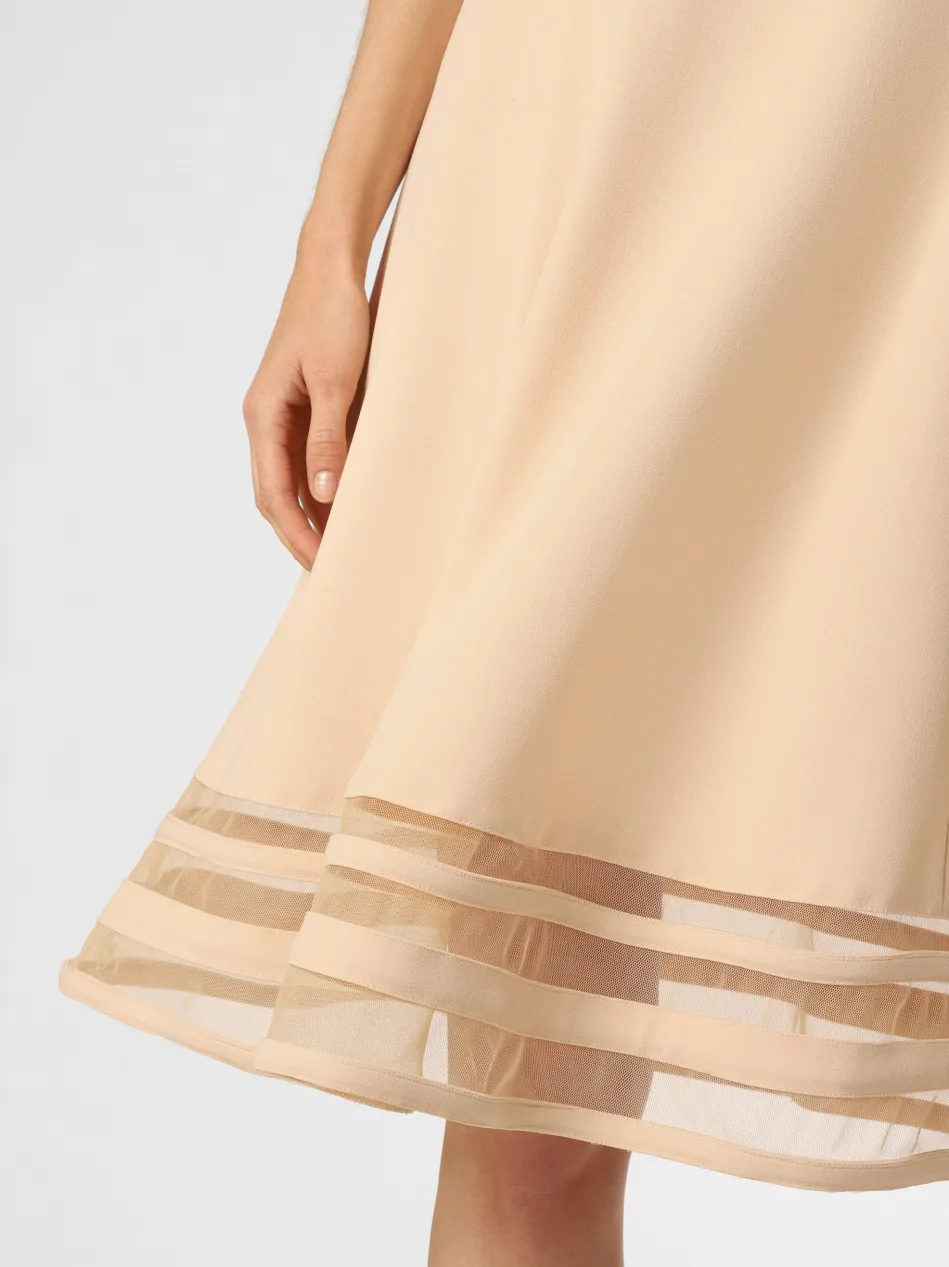 Raffinierter Abschluss: Mesh-Einsätze am Saum schenken dem eleganten Kleid von Paradi einen spannenden Eyecatcher.