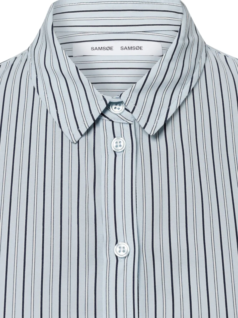 Die Samsoe Samsoe Kurzarmbluse Majan aus leichtem Viskose-Mix überzeugt mit fließendem Fall, modernem Design und angenehm weichem Tragekomfort.