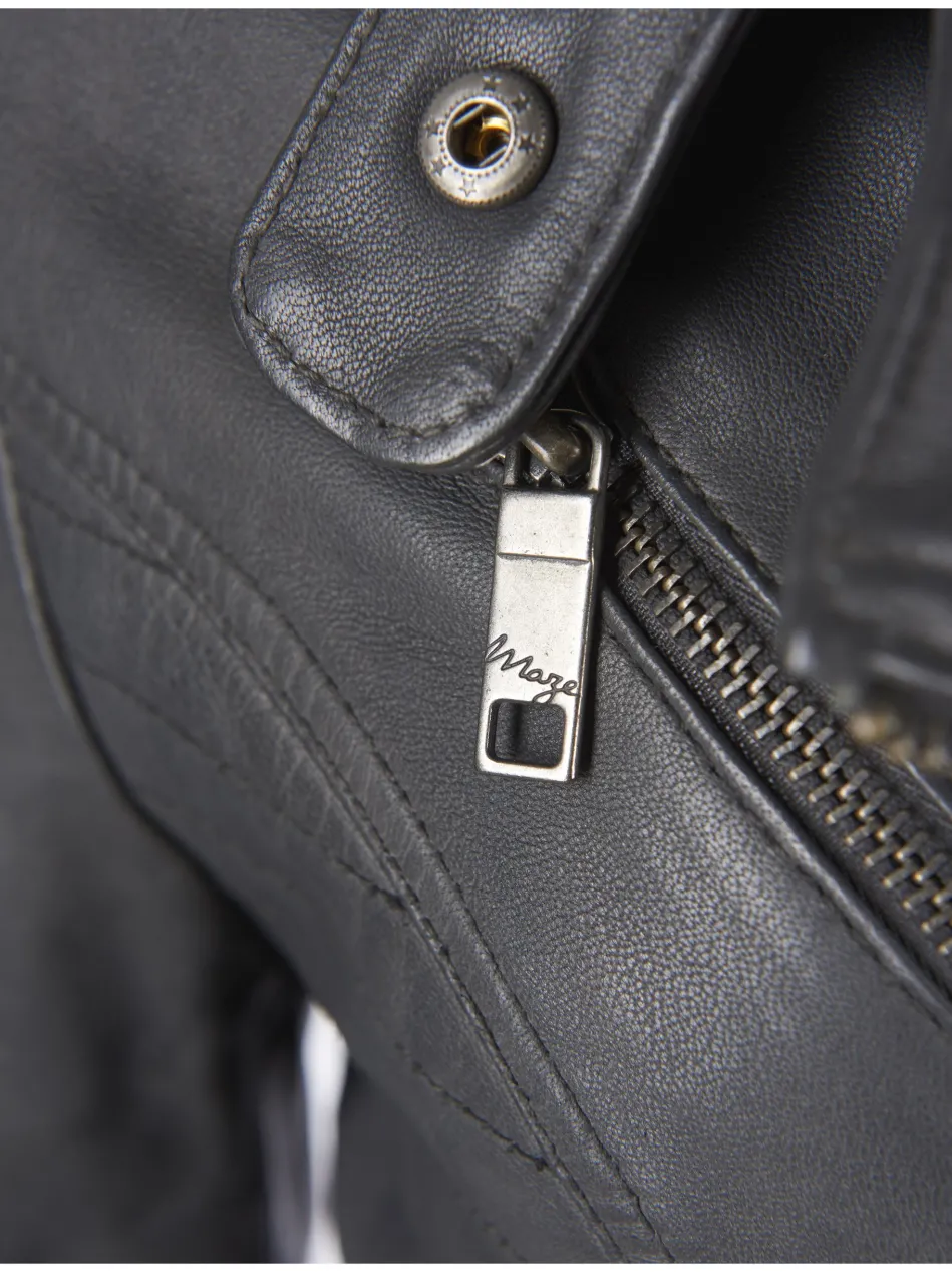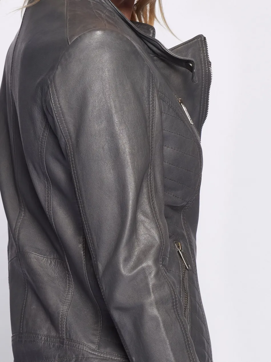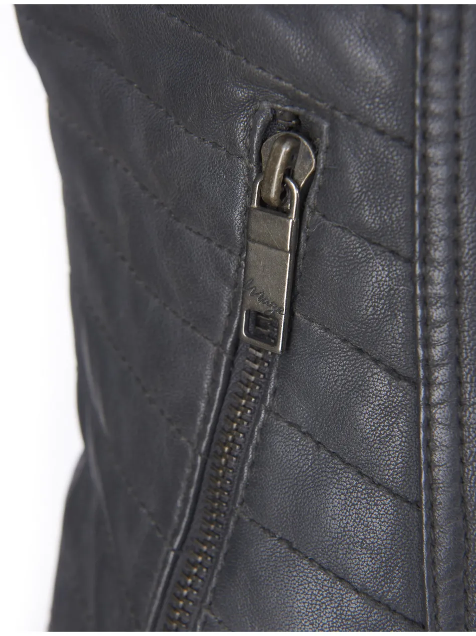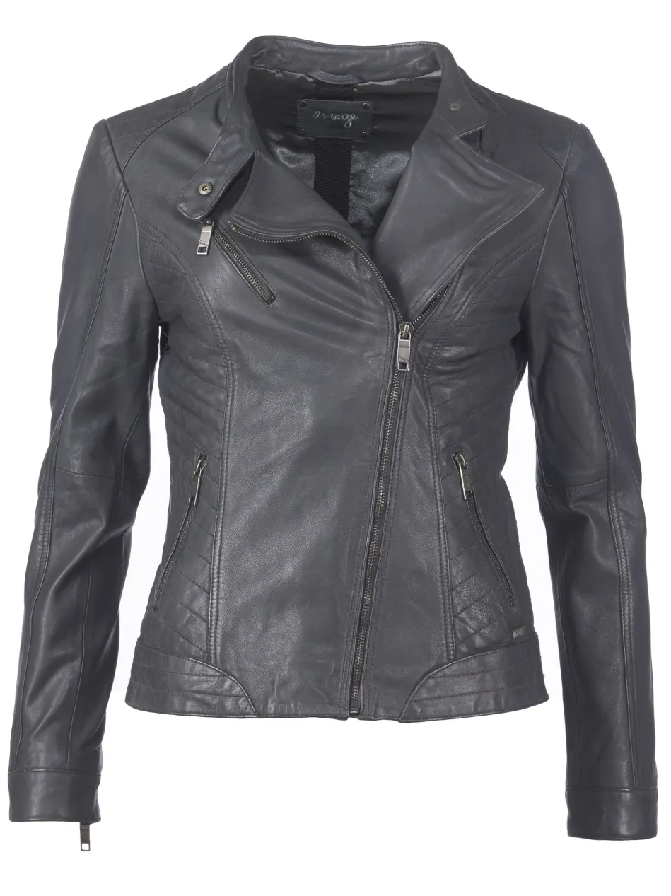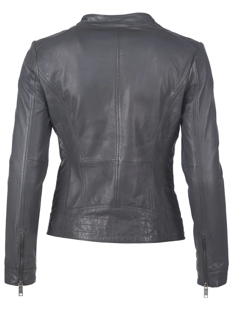 Trendige Damenlederjacke aus handschuhweichem Lammleder der Marke Maze. Die aufwendig eingenähten Seitentaschen, der asymmetrische Reißverschluss und der stylische Stehkragen machen diese Jacke zu einem besonderen Highlight. Die Jacke bietet viele Kombinationsmöglichkeiten.