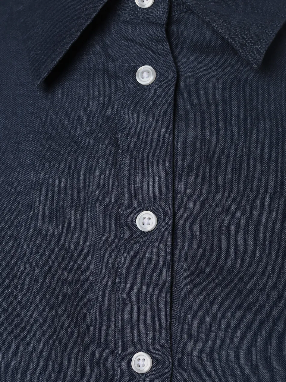 Die Bluse Rihab von Marie Lund weist klassisch-elegante Design-Attribute auf, nimmt durch die charakteristische Leinen-Struktur und den locker anmutenden Fit aber zugleich einen legeren Look an.