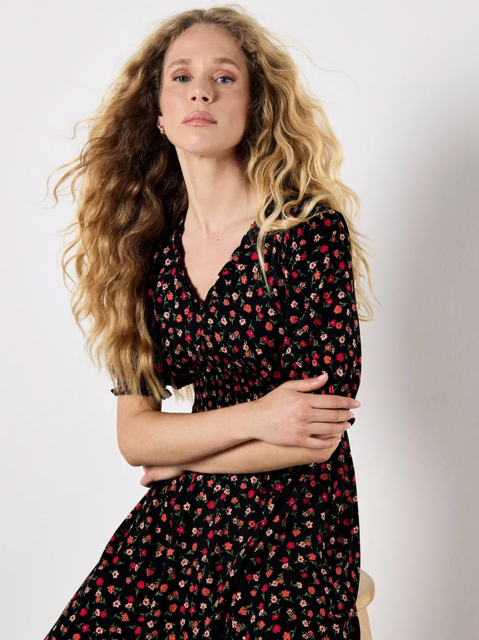 - Florales Midikleid mit Rüschen