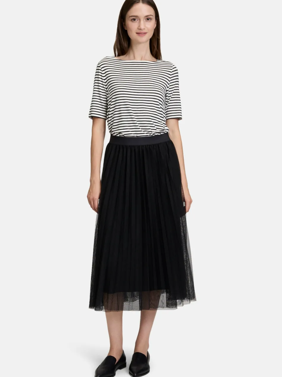 Dieser Midirock vereint feminine Eleganz mit lässigem Komfort. Das figurschmeichelnde Plissee und das unifarbene Design verleihen ihm eine stilvolle, zeitlose Ausstrahlung. Ein besonderes Bunddetail und der praktische Gummizug sorgen für einen bequemen Sitz, während der Verzicht auf einen Verschluss ein unkompliziertes An- und Ausziehen ermöglicht. Ein vielseitiges Basic, das sich ideal für elegante wie auch entspannte Looks kombinieren lässt – ein Must-have für jeden Kleiderschrank!