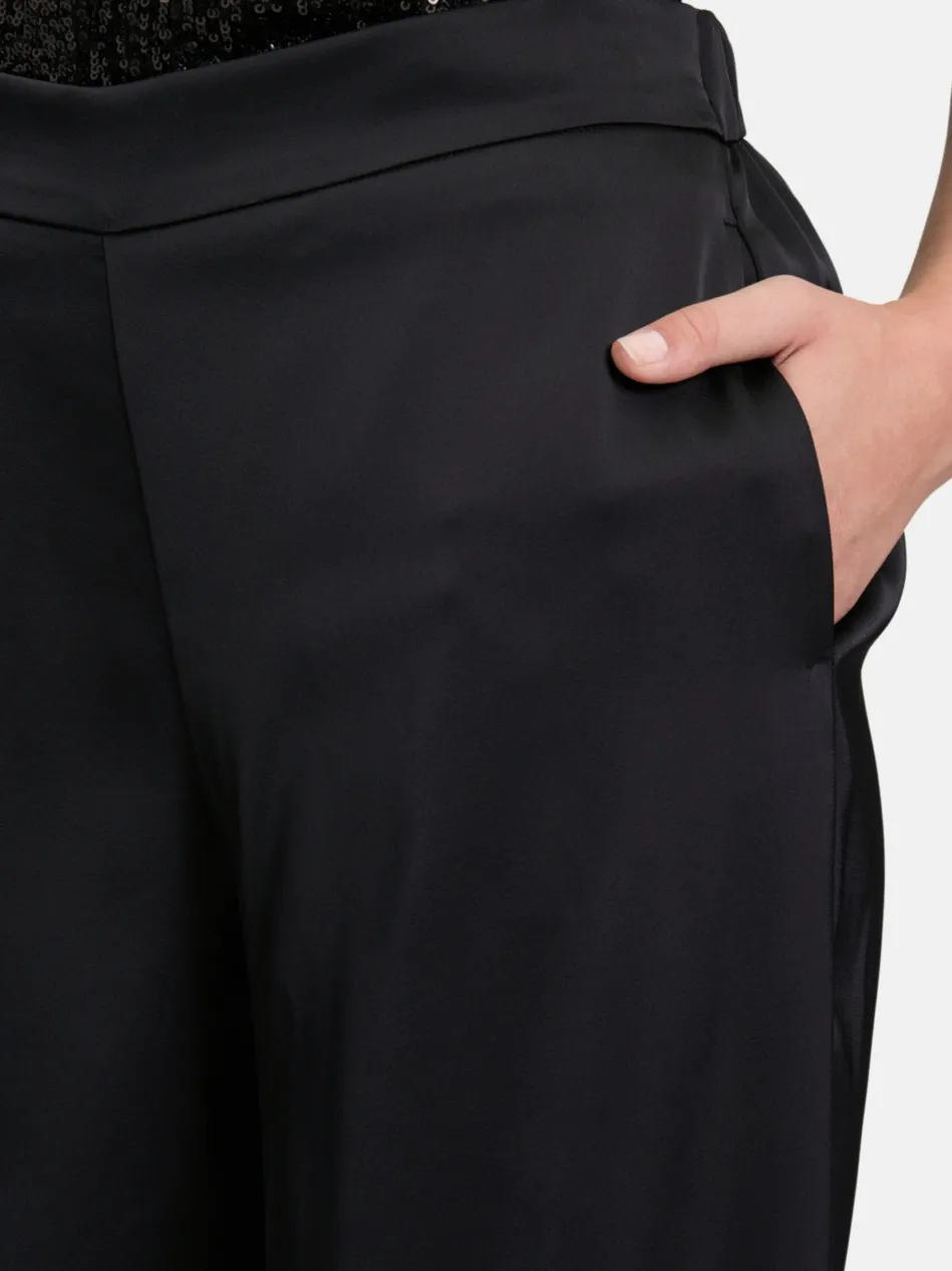 Chic und trendy! Die Hose von Vera Mont im Modern Fit ist ein stilvolles Garderoben-Basic, das durch seinen High-Waist-Schnitt und das ansprechende Bunddetail eine moderne Silhouette kreiert. Seitliche Eingrifftaschen bieten praktischen Stauraum, währendder schwingende Schnitt für eine fließende und elegante Bewegung sorgt. Diese unifarbene Hose ist ein vielseitiges Kleidungsstück, das sich mühelos mit verschiedenen Outfits kombinieren lässt, um einen zeitgemäßen und schicken Look zu erzielen.