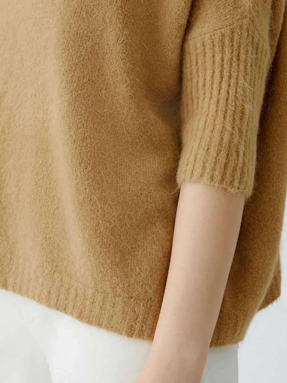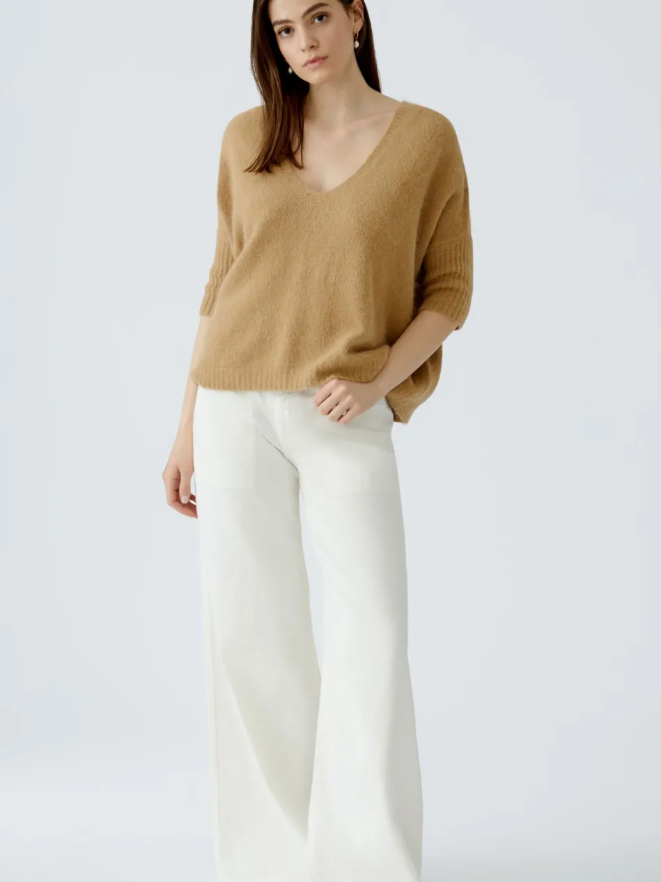 - Hohe Strickbündchen am Ärmel in 3/4 Länge
