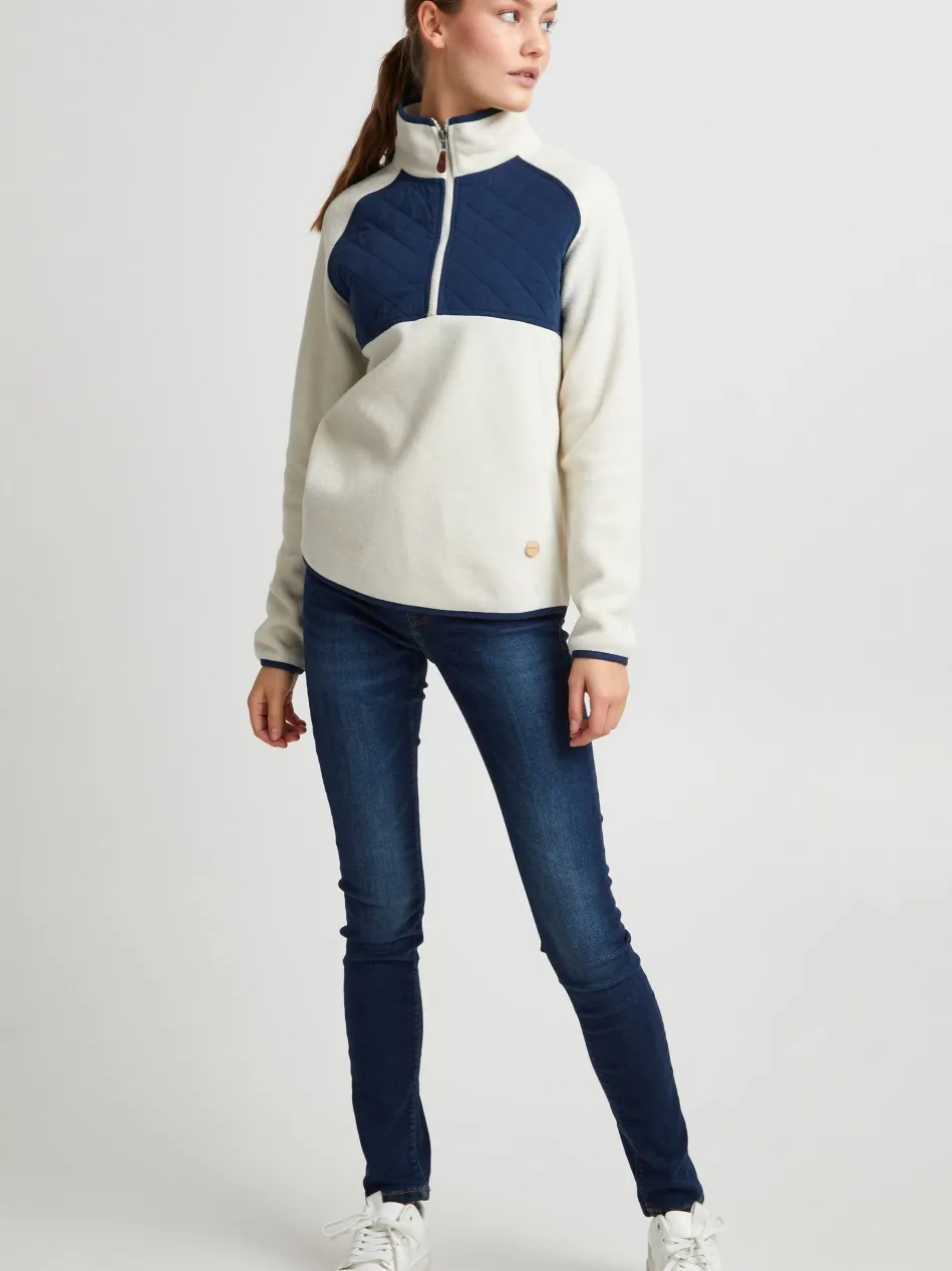 Dieser Fleecepullover mit Troyer-Kragen ist ein stilvoller Begleiter für Damen im Alltag und bei besonderen Anlässen. Die hochwertige Qualität und Verarbeitung sorgen für ein angenehmes Tragegefühl und eine formstabile Passform. Ob getragen mit einer Jeans oder kombiniert mit einer Stoffhose dieser Pullover lässt sich vielseitig stylen. Ein funktionales Basic, das Wärme und Vielseitigkeit gekonnt verbindet.