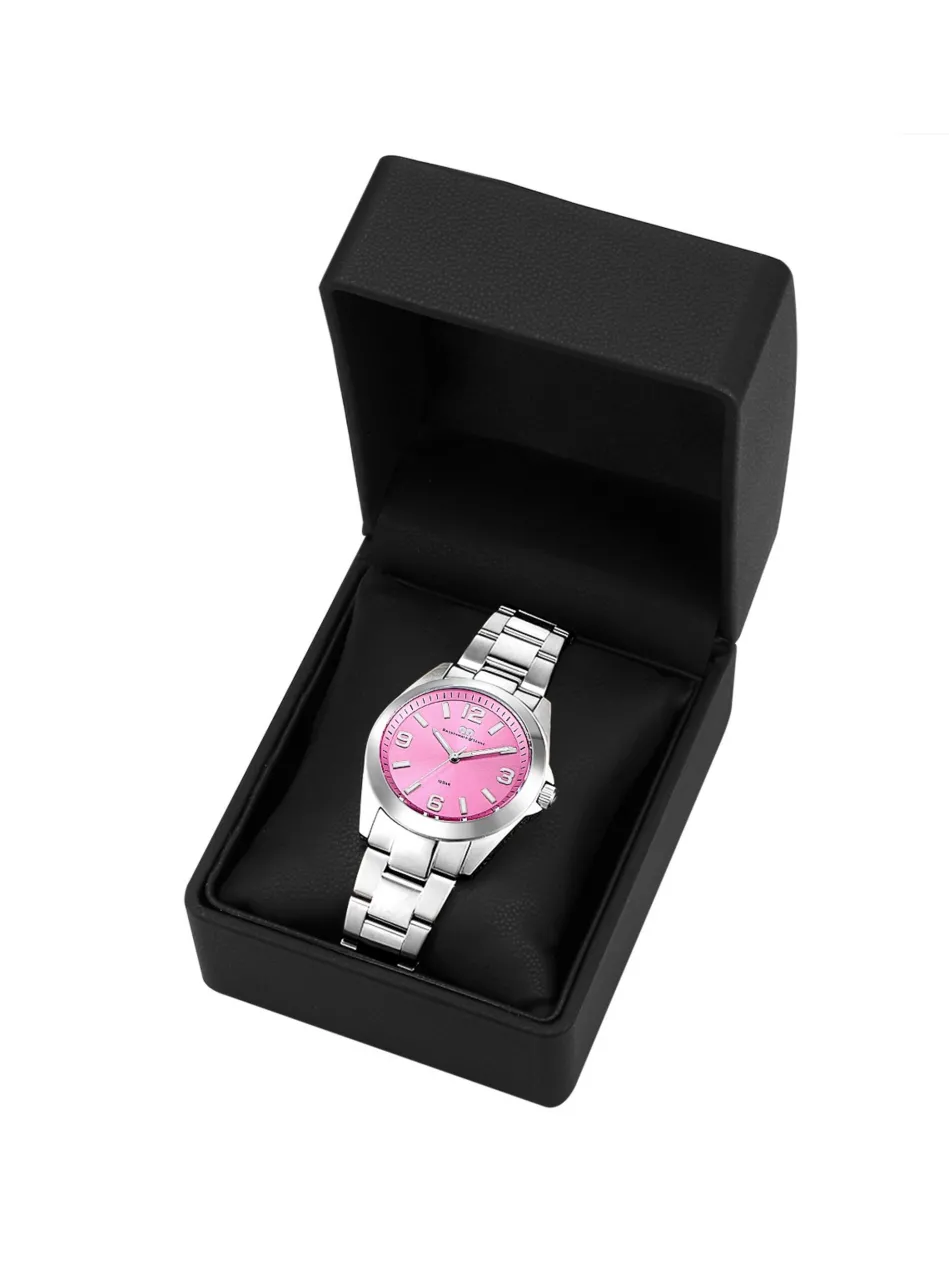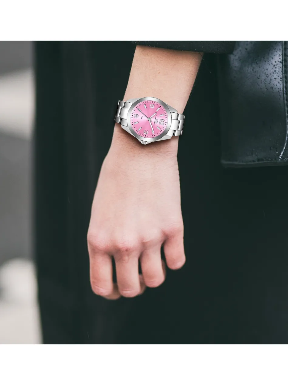 Sie lieben Uhren mit zeitlosem Design in Verbindung mit einem stilvoll-femininen Charakter und exklusiver Qualität? Dann ist diese Damenuhr der Marke Rhodenwald & Söhne die ideale Wahl. Die Uhrenmanufaktur steht für nachhaltige Meisterwerke für alle Generationen: Der Zeitmesser begeistert mit einer zarten Zifferblatt-Colorierung, minimalistischen Strichindizes, arabische Zahlen, Minuterie und luminiszierenden Stab-Zeigern.