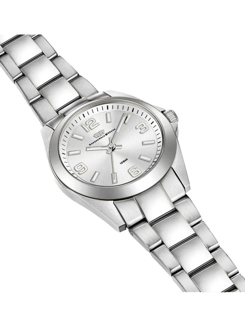Sie legen bei Uhren Wert auf auf zeitloses Design in Verbindung mit einem eigenem Charakter und erstklassiger Qualität? Dann ist diese Damenuhr der Marke Rhodenwald & Söhne die perfekte Wahl. Die Uhrenmanufaktur erschafft stilvolle und nachhaltige Meisterwerke für alle Generationen: Der Zeitmesser überzeugt mit einem aufgeräumten Zifferblatt, minimalistischen Strichindizes, arabische Zahlen, Minuterie und luminiszierenden Stab-Zeigern.