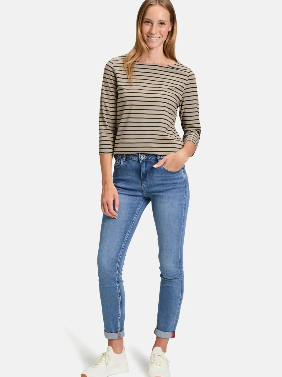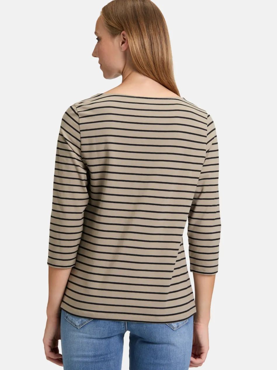 Cool und lässig – dieses taillierte Ringelshirt bringt frischen Schwung in Ihre Casual-Garderobe! Der dynamische Streifen- und Druckmix sorgt für einen modernen Look, der sowohl im Alltag als auch in der Freizeit überzeugt. Der taillierte Schnitt betont Ihre Silhouette auf stilvolle Weise, während das angenehme Material für hohen Tragekomfort sorgt. Ein vielseitiges Basic, das sich spielend leicht mit Jeans, Shorts oder Röcken kombinieren lässt – perfekt für alle, die lässige Eleganz lieben.