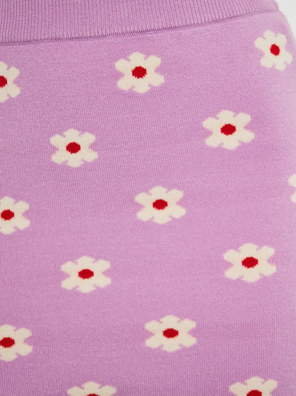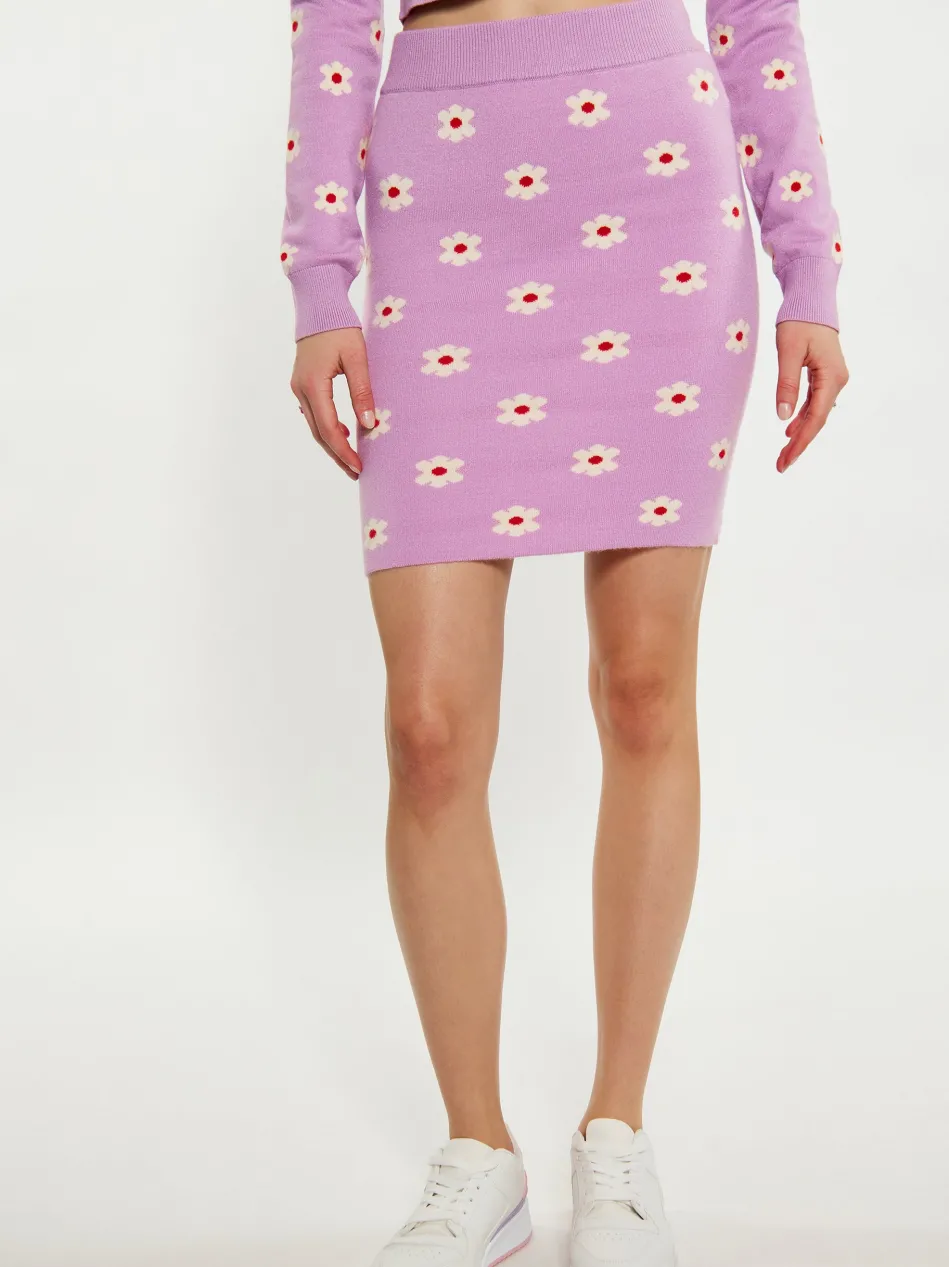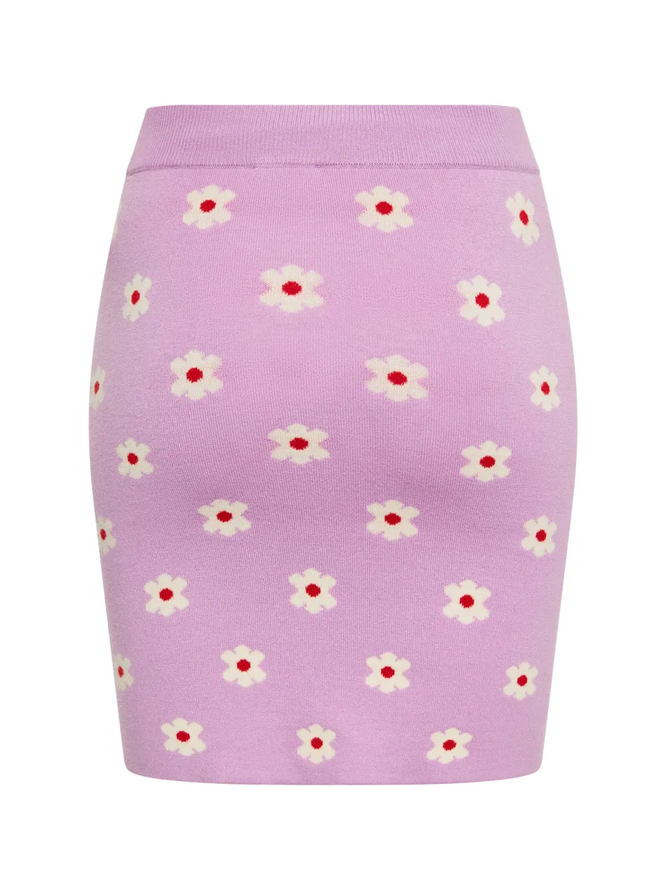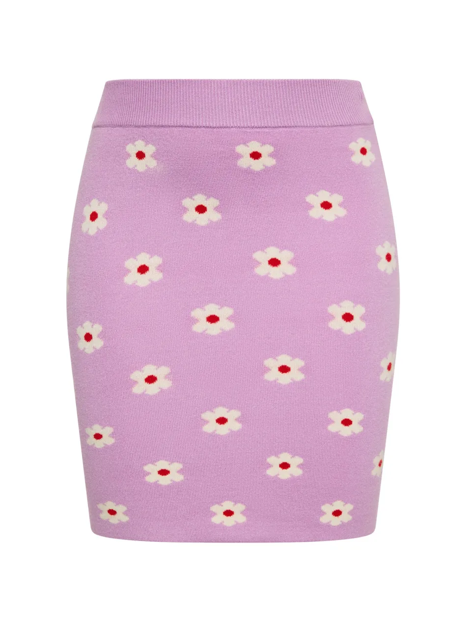 This mini skirt boasts a sophisticated floral jacquard pattern, adding a touch of elegance to your wardrobe. Made from a stretchy knit material, this form-fitting skirt features a high waist with ribbing for added comfort and flexibility. The straight hemline and seamless design create a sleek silhouette. Ideal for both casual and formal occasions, this summer skirt effortlessly combines style and comfort in one chic piece.