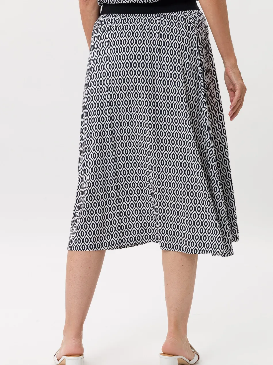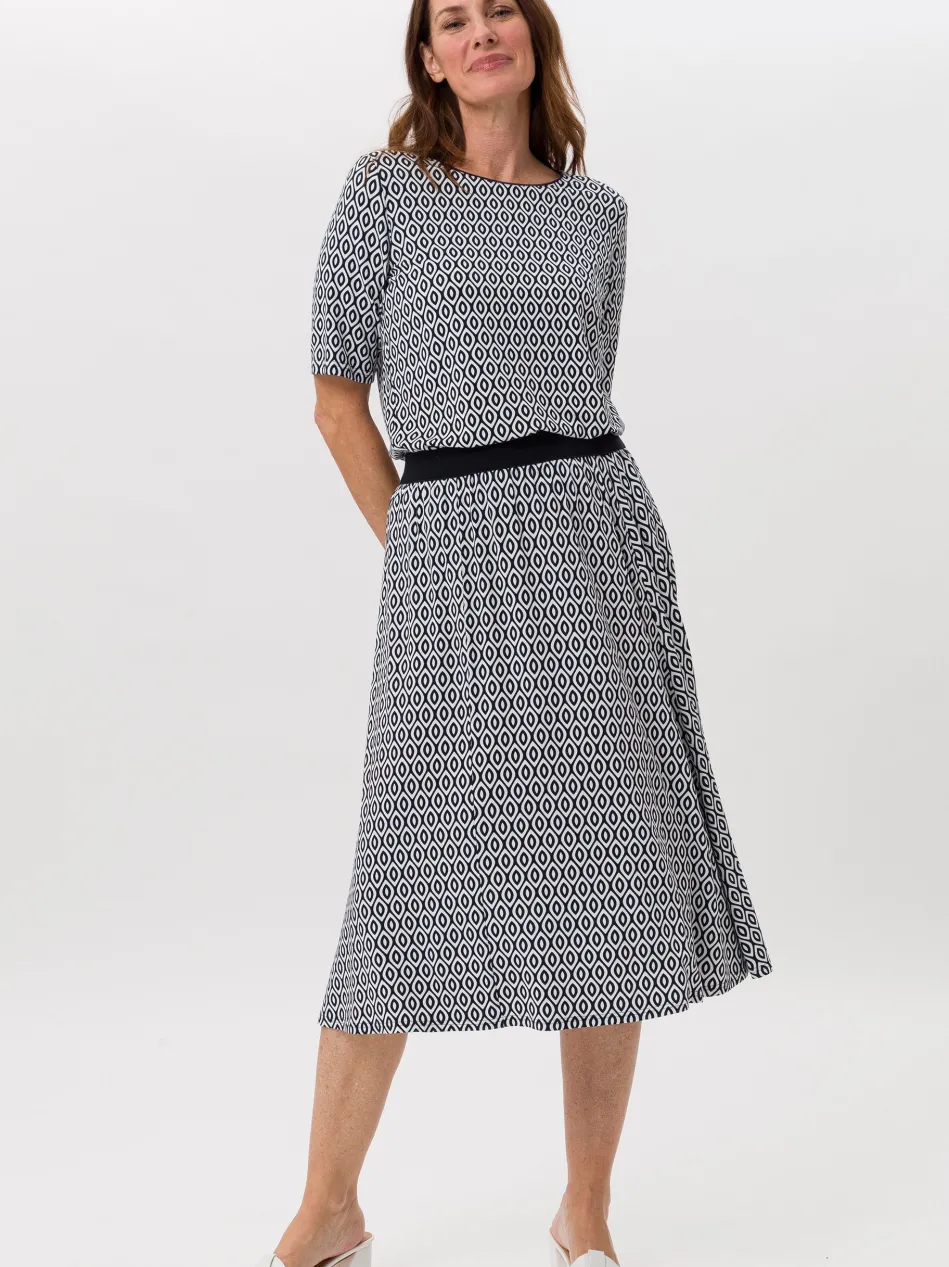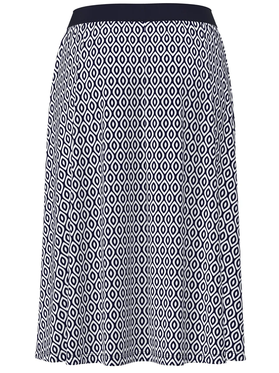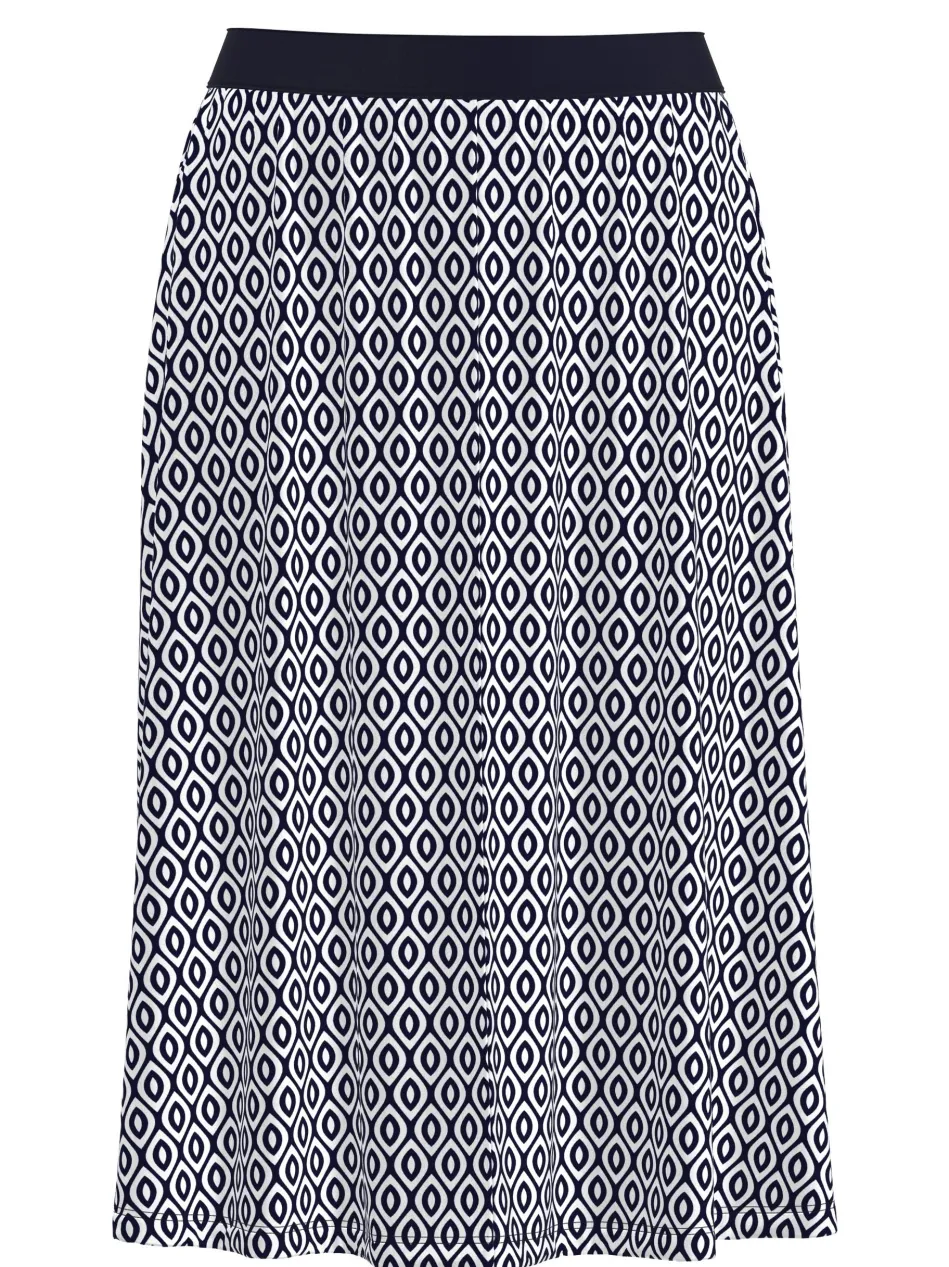 Der Rock überzeugt mit einem modernen Allover-Muster und einem bequemen elastischen Bund. Das leichte Material sorgt für hohen Tragekomfort und einen fließenden Fall. Ideal für vielseitige Kombinationen im Alltag oder zu besonderen Anlässen