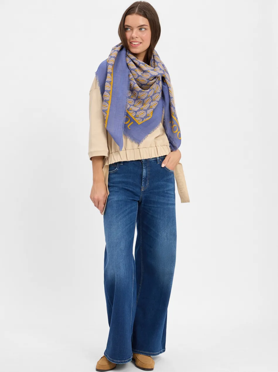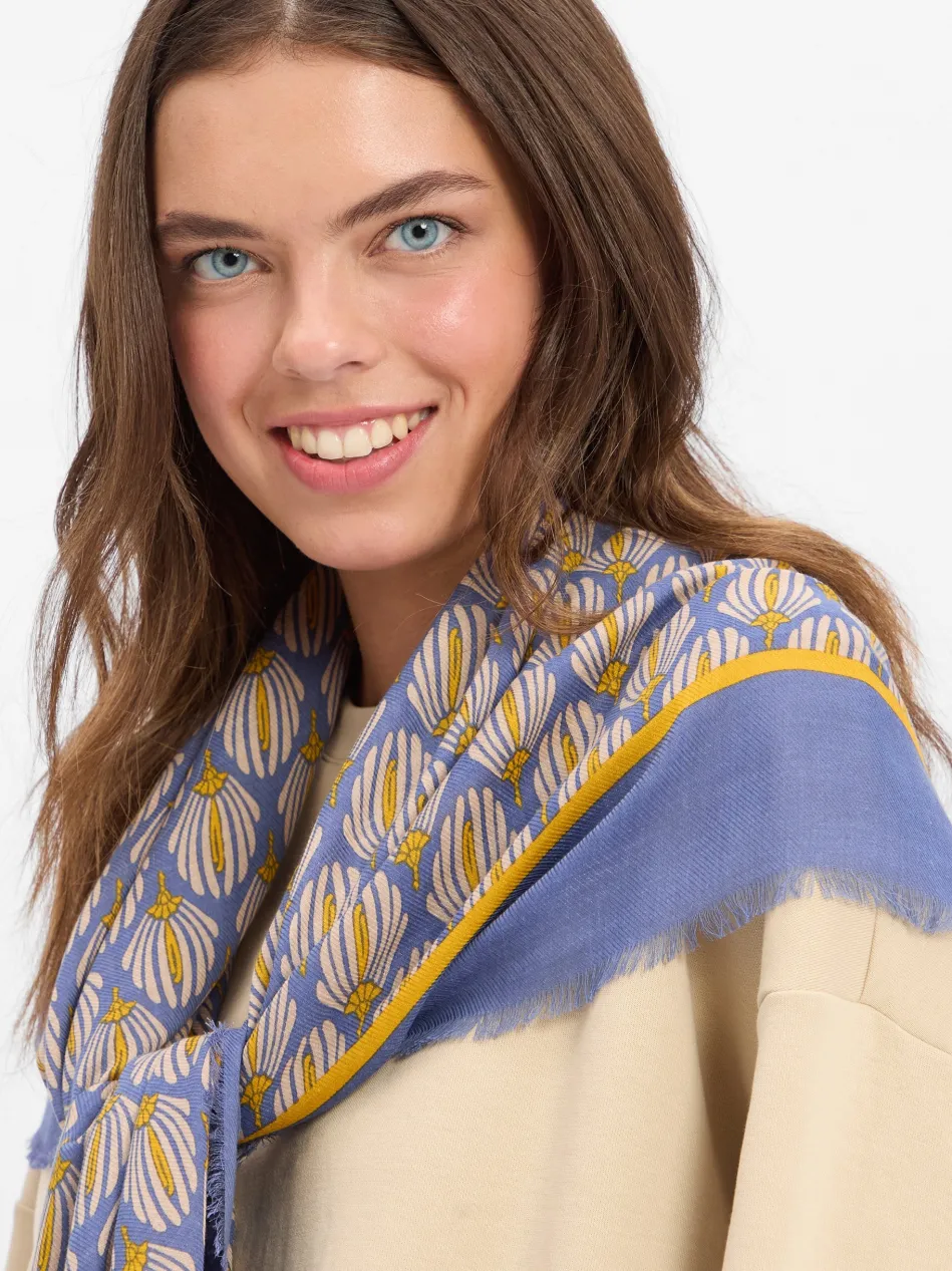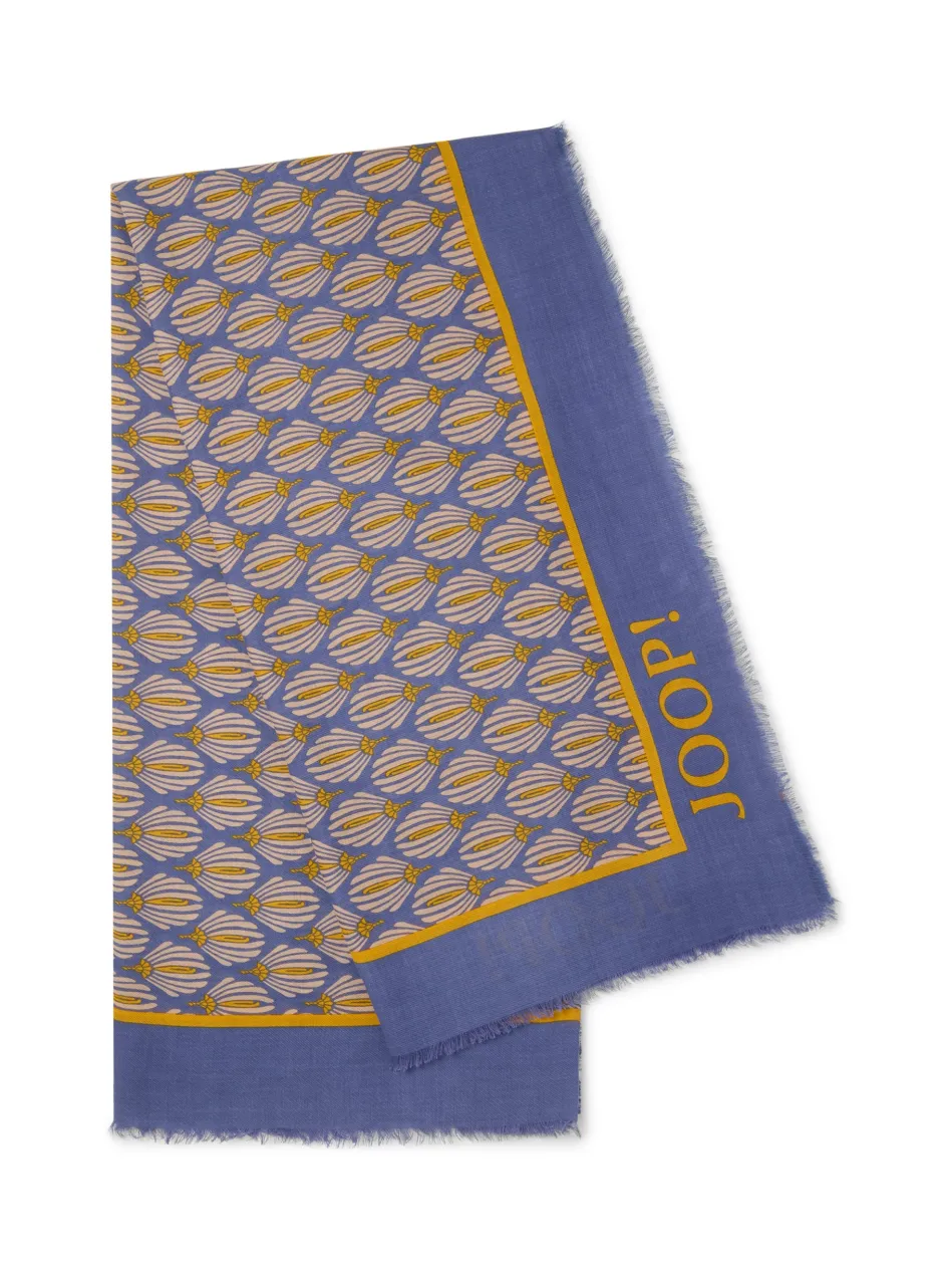 Das Allover-Muster des JOOP! Schals Alea kommt in Kombination mit unifarbenen Oberteilen wunderbar zur Geltung und erstrahlt so besonders schön.