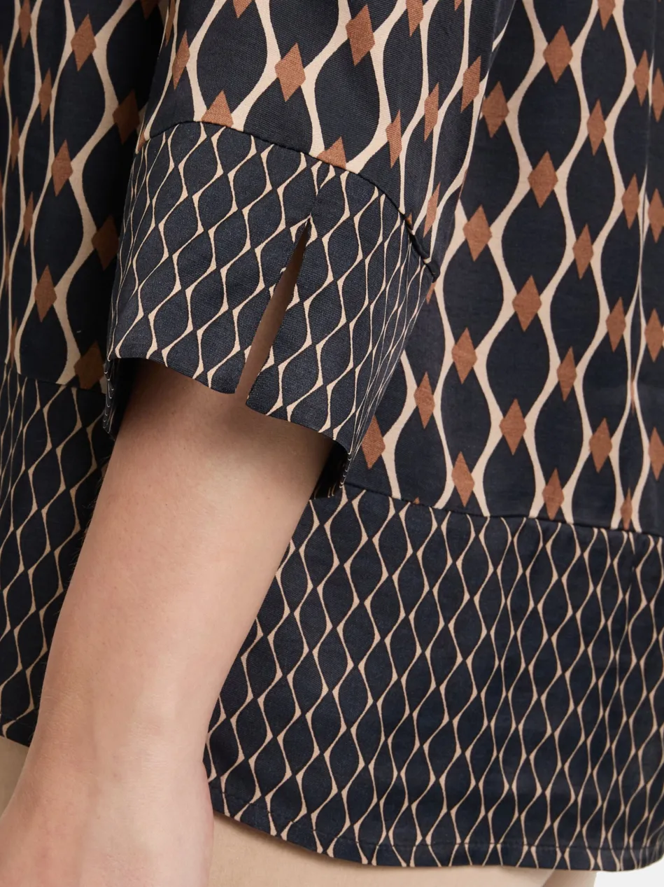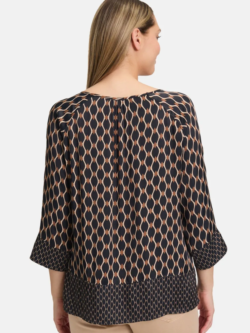 Auf der Suche nach einem besonderen Highlight für Ihre Garderobe? Diese figurumspielende Schlupfbluse mit auffälligen Patches im grafischen Design verbindet femininen Charme mit einem modernen Twist. Der lockere Schnitt sorgt für eine schmeichelhafte Silhouette, während das verschlusslose Design für ein unkompliziertes An- und Ausziehen sorgt. Ob elegant zum Rock oder casual zur Jeans – diese Bluse bringt Frische und Individualität in jeden Look.