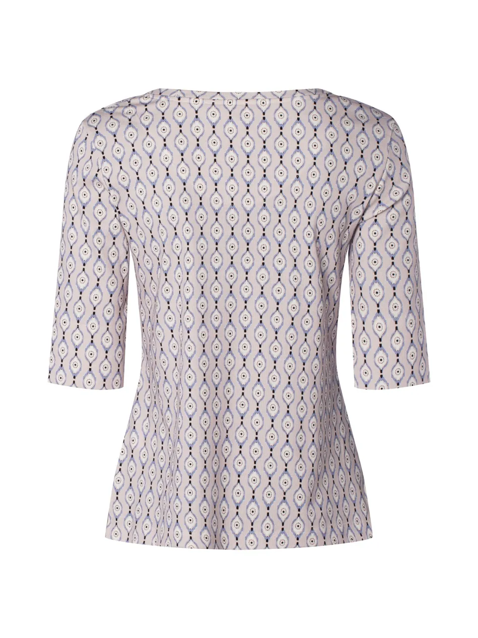 Das gemusterte Shirt von Marc Cain Sports aus elastischem Baumwoll-Ripp begeistert mit hohem Tragekomfort, halblangenÄrmeln sowie liebevollen Details.