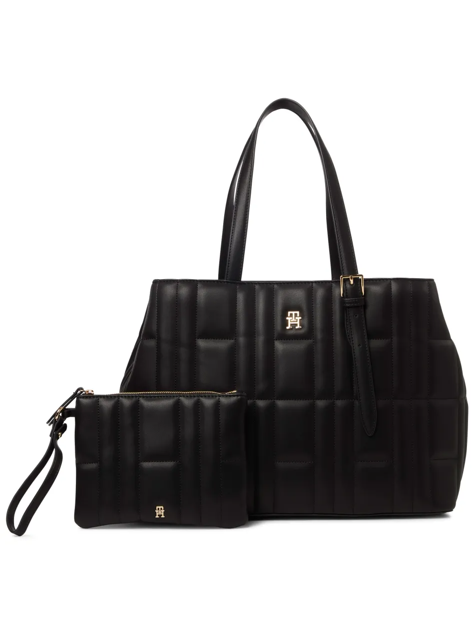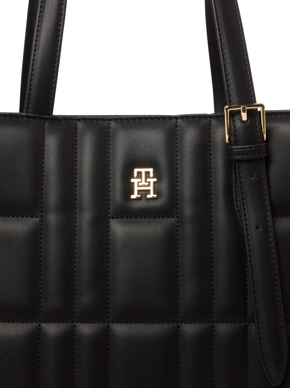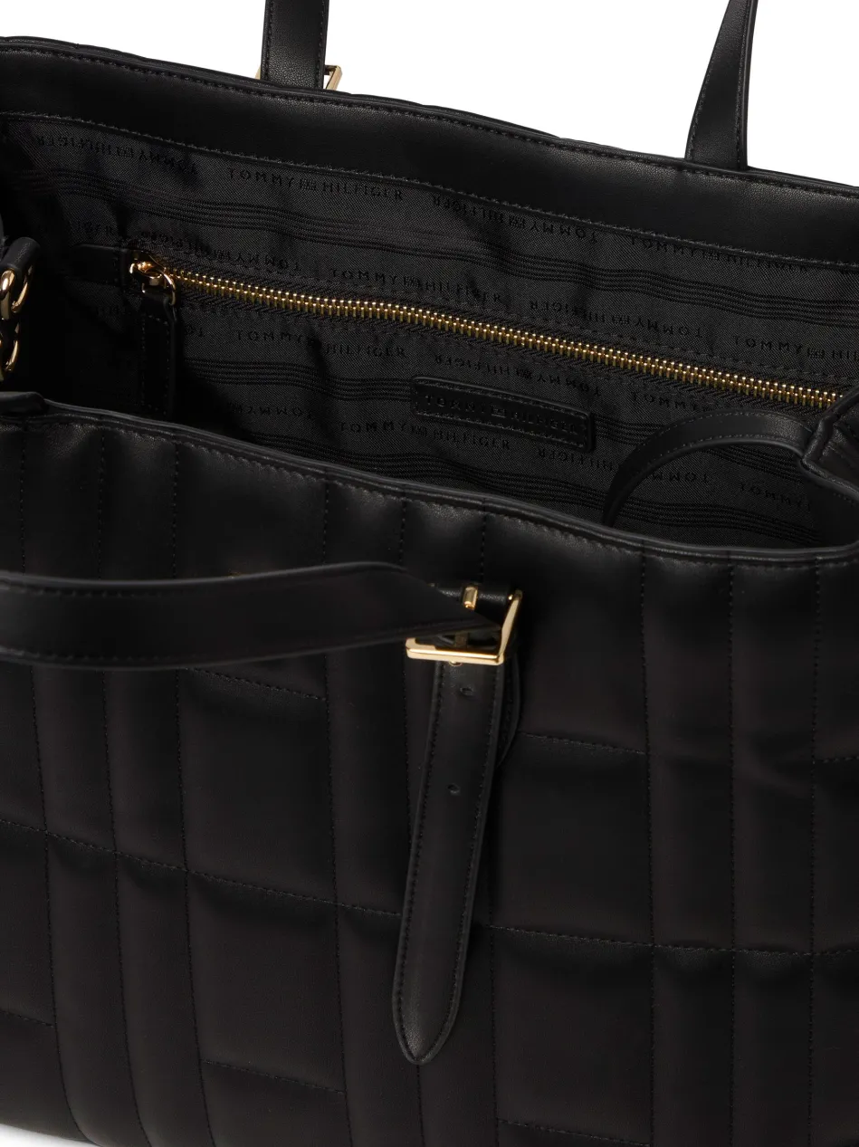 Der Tommy Hilfiger Shopper aus glattem Kunstleder bekommt mit dem geradlinigen Stepp-Design ein modernes Update.