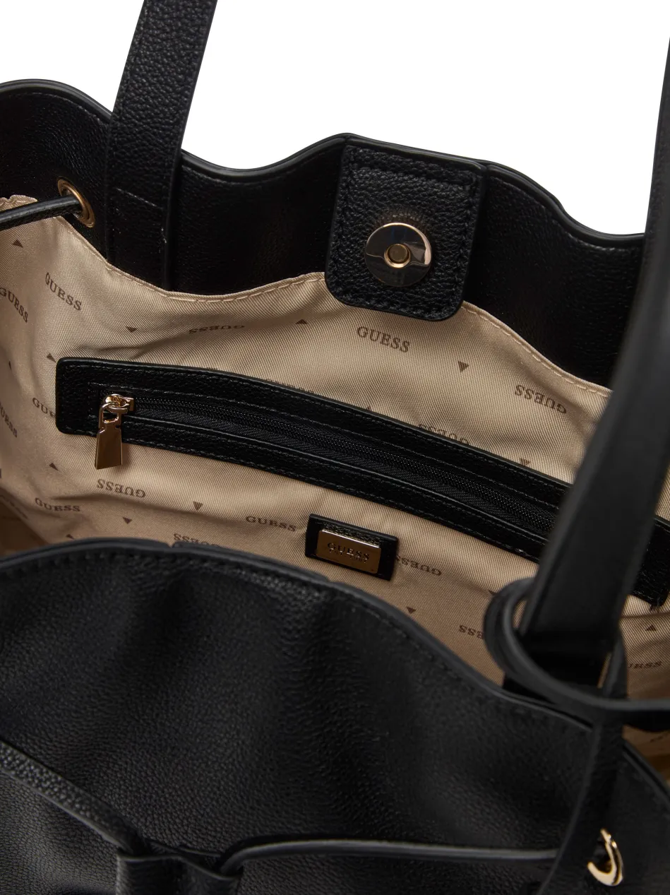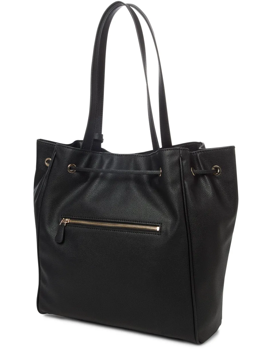 Der GUESS Shopper Calebra aus genarbtem Kunstleder zeigt sich edel mit glanzvoller Hardware und bietet mit dem geräumigen Hauptfach ausreichend Platz für alle Essentials unterwegs.