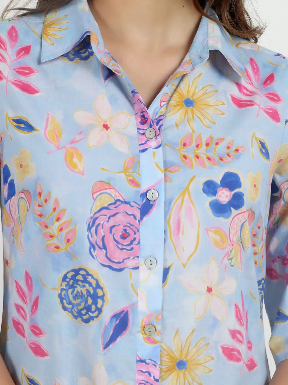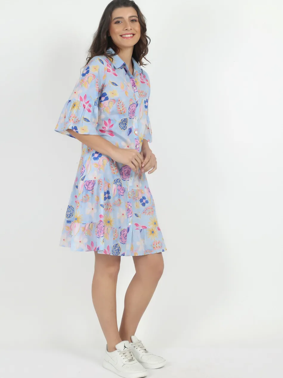 Feminines und verspieltes Baumwollkleid mit wunderschönem Druck. Der Hemdkragen verleiht dem Kleid eine elegante Note, während der ausgestellte Rockteil und die ausgestellten Ärmel den verspielten Look unterstreichen. Für einen sportlichen Freizeit-Look kombinierst du weiße Sneaker oder Loafer. Gesamtlänge: 96 cm, Brustweite: 96 cm, Taillenweite: 92 cm.