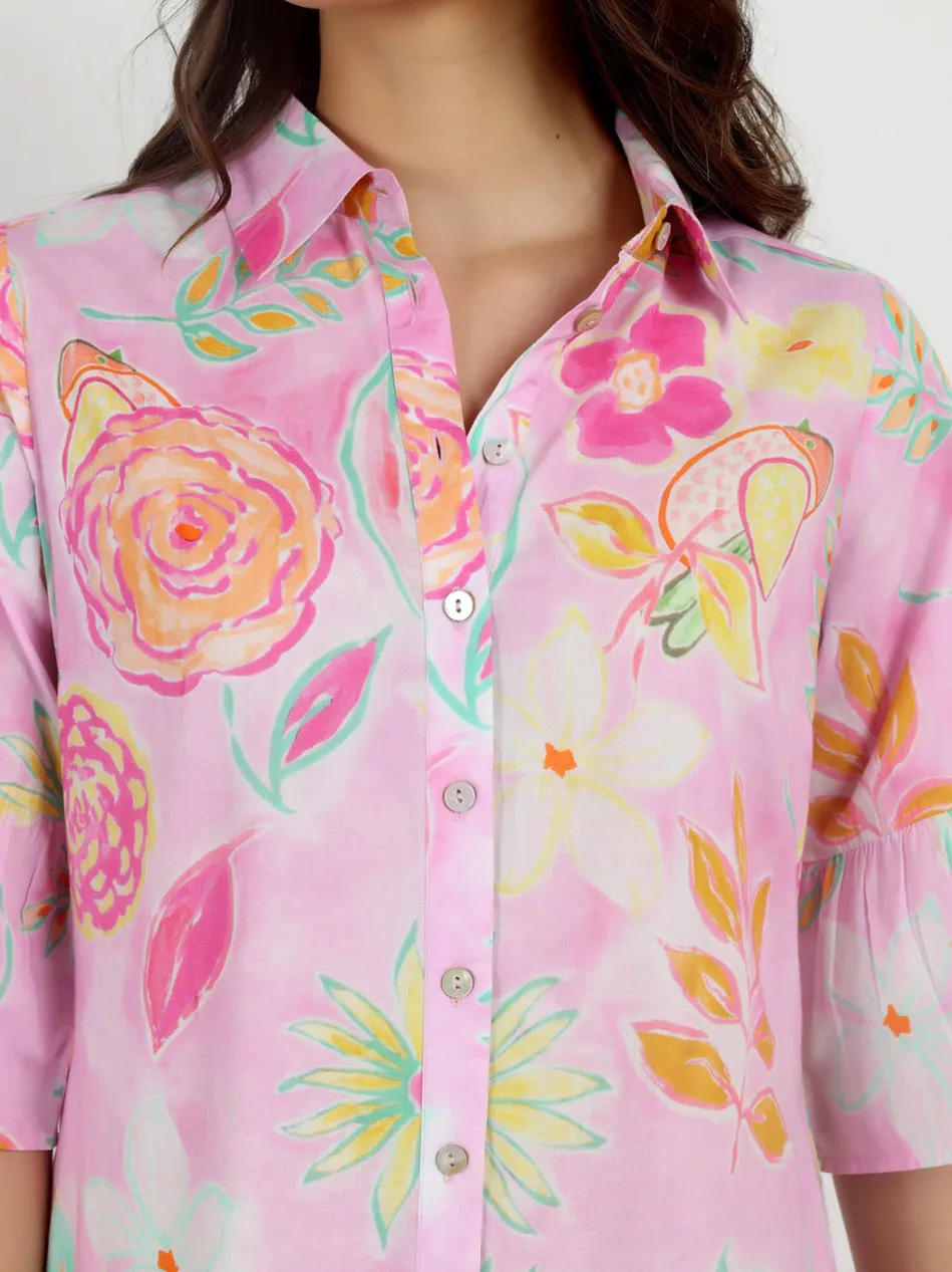 - Hemdblusenkragen mit durchgehende Knopfleiste