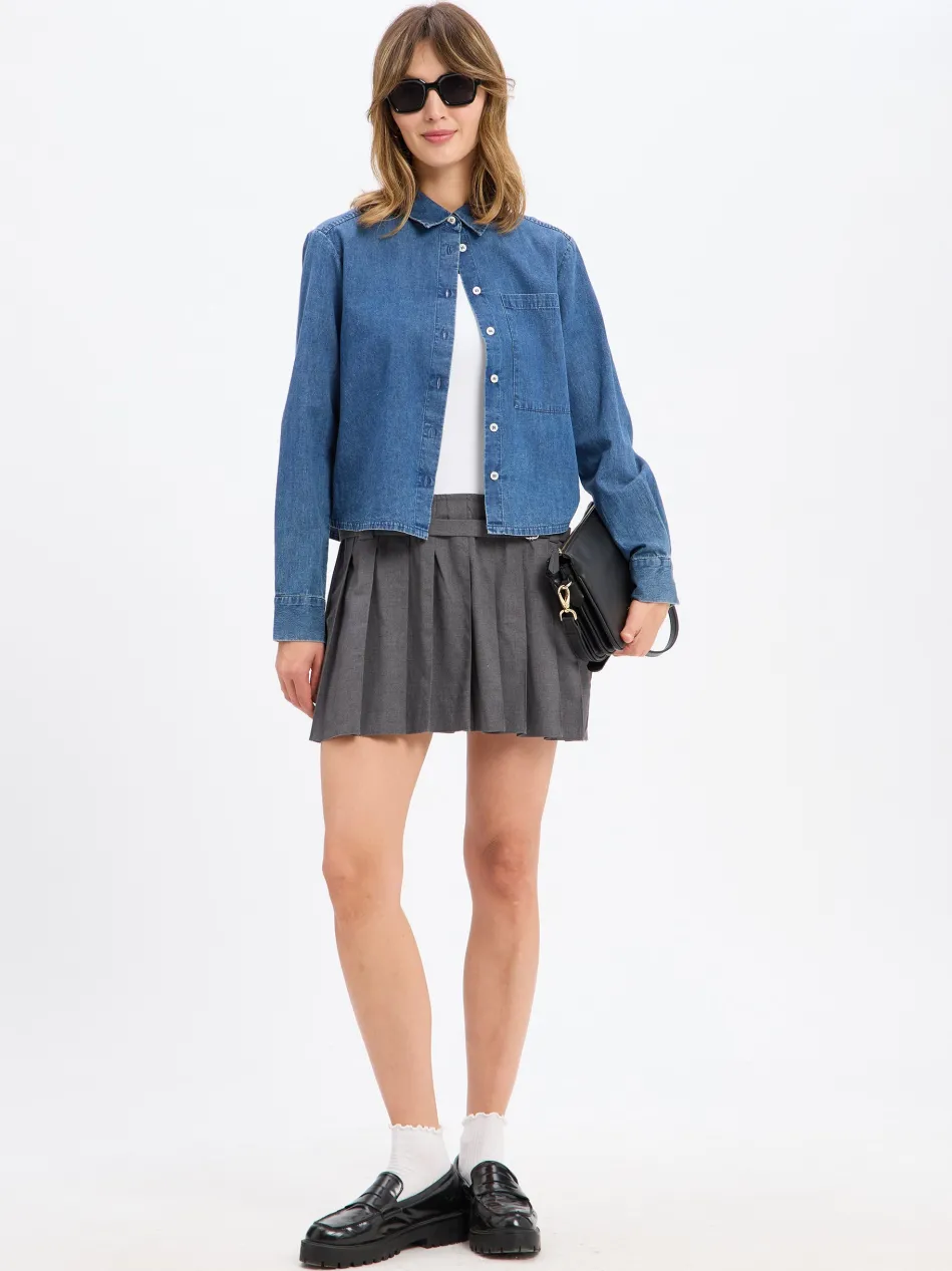 Das stylische Sommerkleid Norila von Hugo Blue kombiniert ein sportliches Tanktop-Oberteil mit einem auf der Hüfte sitzenden Faltenrock.