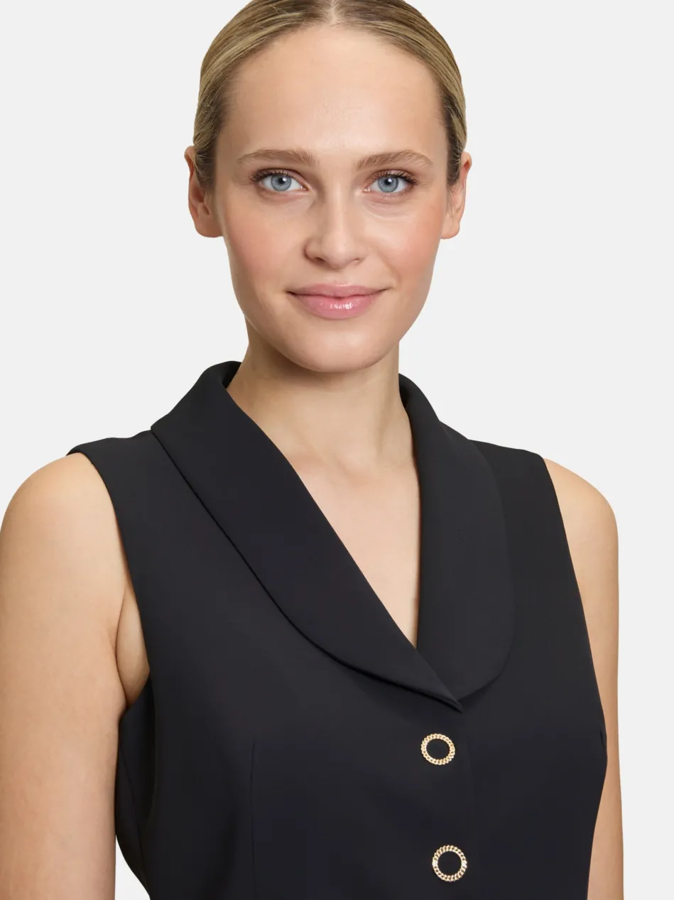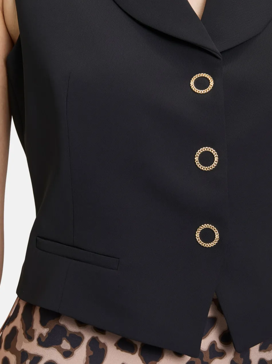 Diese Sommerweste ist das ideale Detail, um Ihr Outfit perfekt zu ergänzen. Sie überzeugt mit einer taillierten Passform, die Ihre Silhouette schön betont. Das hochwertige Material wirkt elegant und sorgt für einen edlen Look. Die feinen Paspel-Details und die Knopfleiste setzen modische Akzente, während praktische Paspeltaschen zusätzlichen Komfort bieten. Ob zu einem lässigen oder formellen Look – diese Weste verleiht jedem Outfit das gewisse Etwas.