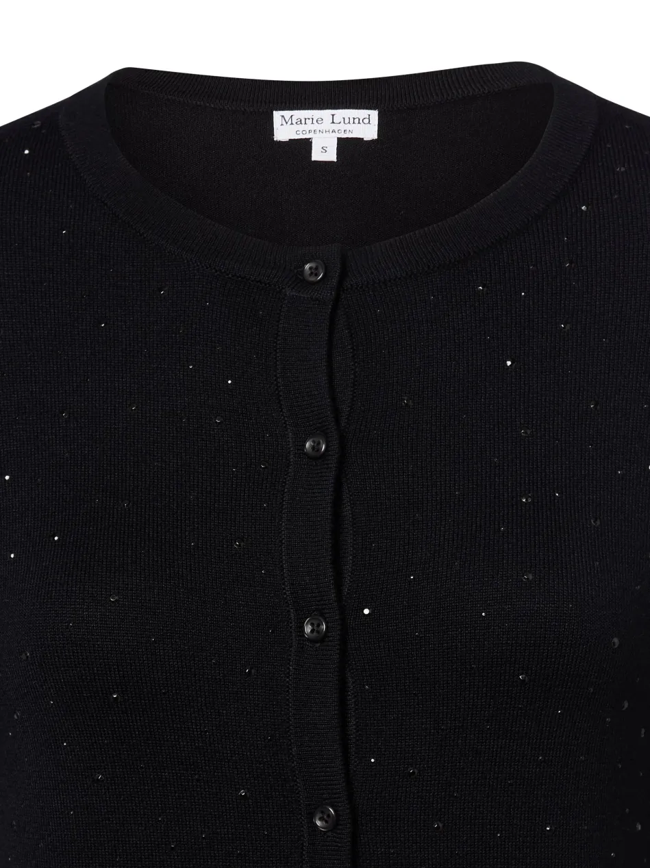 Die applizierten Schmucksteine bringen die klassische Strickjacke von Marie Lund aus feinem Viskose-Mix wunderschön zum Funkeln.