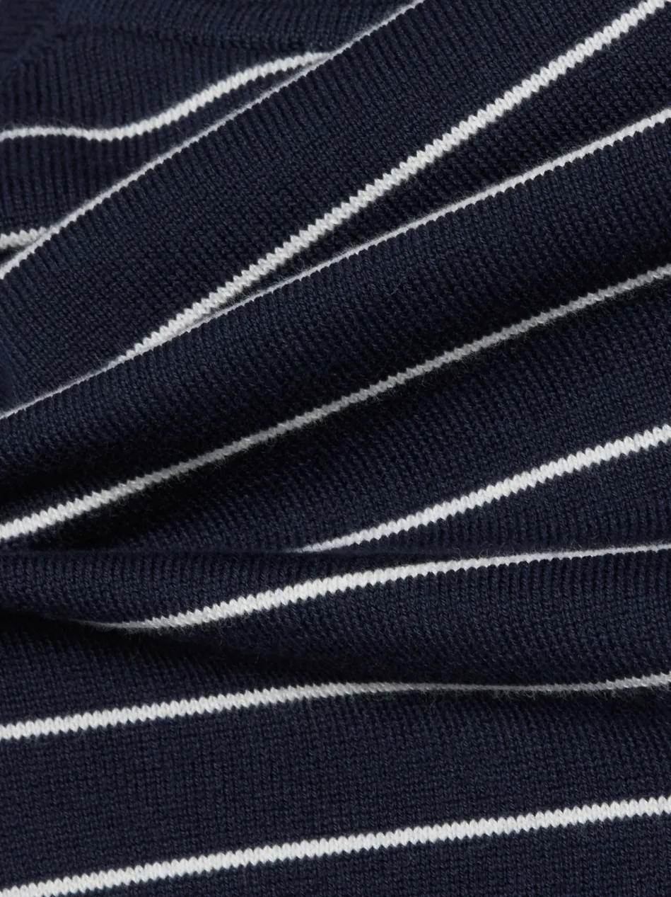 Die Tommy Hilfiger Strickjacke aus einem feinen Viskose-Mix hinterlässt durch ihr Streifen-Design eine maritim-sportive Note im Styling.