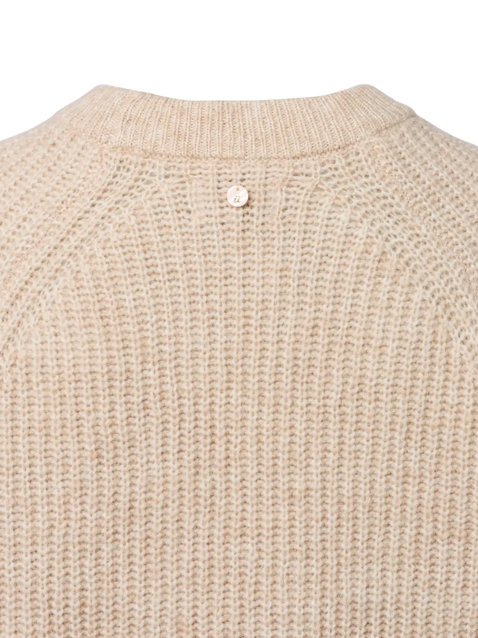 Der Pullover Nuzindi von Nümph ist dank griffiger Rippstrick-Qualität mit weichem Alpaka-Anteil und einer lockeren Passform ein bequemer Allrounder für kühle Tage.