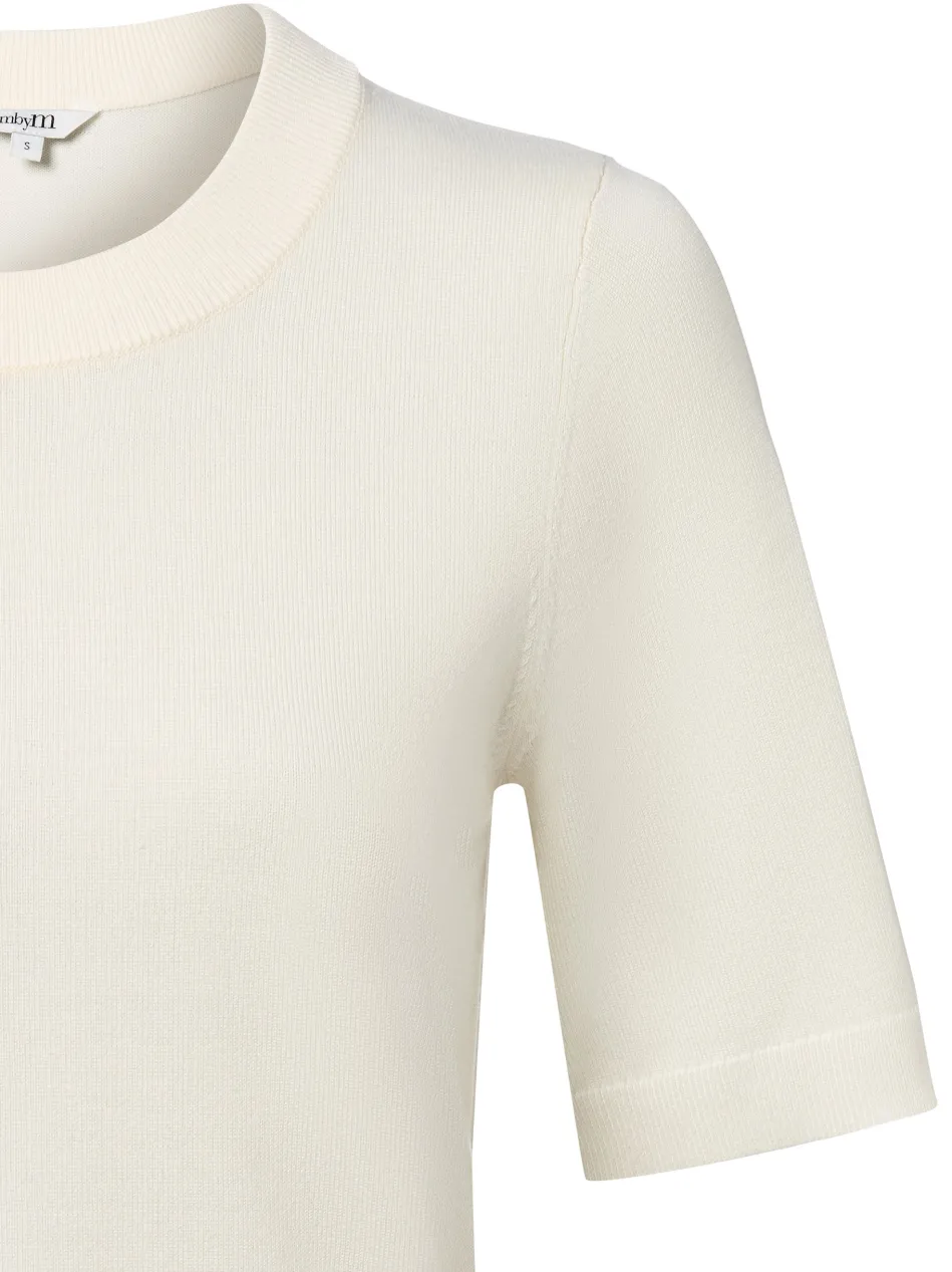 Die angenehme Feinstrick-Qualität verleiht dem eleganten Strickshirt Carla-M von mbym Tragekomfort, ergänzt durch elastische Rippbündchen.