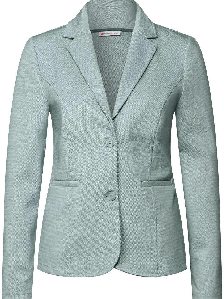 Lässig und stilvoll zugleich zeigt sich der Freizeitblazer von Street One in angenehmer Sweat-Qualität – für eine schöne Silhouette sorgen der taillierte Fit und formgebende Teilungsnähte.